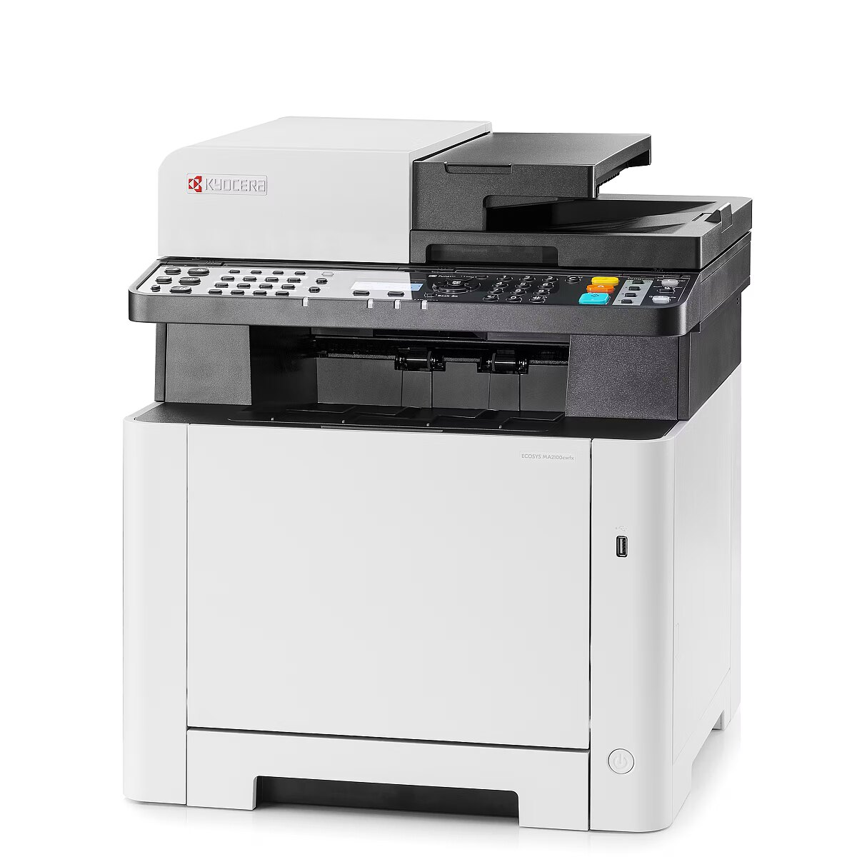 Technical_details - Type: multifunction printer Colour: grey/black EAN: 0632983074879 Manufacturer number: 110C0A3NL0 Series: Ecosys MA Connections: 1x RJ-45, 2x USB-B 2.0, 1x USB host Communication: WiFi direct printing, WLAN Formats: A4, A5, A6 Media: glossy paper, plain paper Emulations: PCL 6 (5c, XL), KPDL 3 (PostScript 3 compatible), PDF Direct Print 1.7, XPS/Open XPS Direct Print Operation: function keys, number pad Display: 5-line LCD, backlit Consumables: Toner: TK-5440K black (up to 2800 pages/ISO), TK-5430K black (up to 1250 pages/ISO), TK5440C cyan, TK-5440M magenta, TK5440Y yellow (each up to 2400 pages/ISO), TK5430C cyan, TK5430M magenta, TK5430Y yellow (each up to 1250 pages/ISO) Compatible: MacOS X, Windows 8, Windows 10, Windows 11, Windows 2012 Server, Windows 2016 Server, Windows 2019 Server Memory: 512MB : 1,500MB Memory card reader: SD, SDHC Trays: Tray 1: 250 sheets : Tray 1: 150 sheets : Tray 1: 50 sheets Printer: 210 x 297 mm : 1200x1200dpi : 1200x1200dpi : color laser printing : 65000 sheets : 2000 sheets : Black (A4): 21 ppm : Color (A4): 21 ppm Fax: 256 pages : 22 Copier: 999 : 25% - 400% : 2 pages per sheet, 4 pages per sheet Scanner: 210 x 297mm : 600x600dpi : 600x600dpi : 50 sheets : feeder, flatbed Power supply: AC 220 - 240V (50Hz/60Hz) : 345 watts : 41 watts Feature: Duplex unit (printing), Apple AirPrint, direct printing from USB, Processor: Cortex-A9 with 800 MHz. Security features: "Confidential Print" with PIN code request, Encrypted PDF Direct Print, security watermark, IPSec, HTTPS, SNMPv3, TLS 1.2, SMB 3.0, local and network authentication (Kerberos, NTLM, 802.1x), user group restriction by User login management, IP filter, port number restriction, interface blocking, integrated account management for up to 20 accounts. Media weights supported: 60 – 220 gsm. Adjustable media sizes: 70mm x 148mm - 216mm x 356mm). Printing functions: Proof and hold, N-up printing (printing multiple pages on one sheet), Internet printing IPP 1.0, e-mail printing, WSD print, toner save mode. Copy functions: multiple copies from memory, electronic sorting, skipping blank pages, ID card copy, multiple scan, priority print (interruption of running Print jobs for copying, after completion of the copying process, automatic continuation of the waiting print job). Scan output formats: PDF, PDF/A-1a/b, High Compression PDF, Encrypted PDF, JPEG, TIFF, (Open) XPS. Scan Features: Scan to Email, Scan to FTP, Scan to PC (SMB), TWAIN (USB, Network), WSD(WIA) Scan (USB, Network), Scan to USB Host, Mopria Scan. Fax functions: 100-entry address book, network fax, memory reception, delayed transmission, broadcast transmission, fax polling, duplex reception, multi-scan1, Fax forwarding (to another fax machine, email address or folder via SMB or FTP). Accessories: Toner for up to 1500 pages (ISO) in black, cyan, magenta and yellow, quick start guide, safety instructions, power cable, fax cable Dimensions: Width: 417mm x Height: 495mm x Depth/Length: 429mm Weight: 26kg