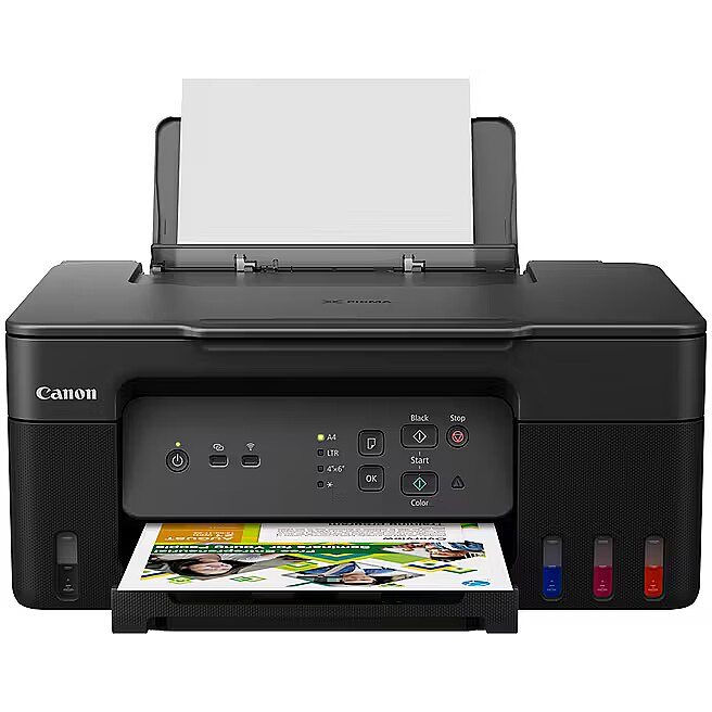 Description - Canon PIXMA G3430 This fast and easy-to-use Wi-Fi-enabled 3-in-1 printer with refillable ink tanks cuts down on printing costs at home. Fast printing. HUGE savings This fast, efficient and affordable Wi-Fi enabled MegaTank printer allows you to print, copy and scan documents at home and save huge amounts of money. With refillable tanks and a single set of ink bottles that can print up to 4,600 pages1, running costs are surprisingly low compared to cartridge-based printers. Very low running costs Highly efficient, refillable ink tanks deliver big savings over the life of the printer. Black ink yields 31,001 pages (3,900 in Eco mode) and color ink yields 44,001 pages (4,600 in Eco mode). Simple operation Easy and simple everyday operation with clear buttons and the ability to install the printhead in one operation. Speed and efficiency Create documents faster with print speeds of 11.0 ipm (mono) and 6.0 ipm (colour). Easy maintenance at home Keep downtime to a minimum with user-replaceable maintenance cartridges and no-squeeze ink bottles with mechanical ID. Wireless connectivity Print seamlessly from multiple devices with Wi-Fi connectivity and support for PIXMA Cloud Link, Canon Print App, Apple AirPrint, etc. Supports a wider range of media Get creative from home with the ability to print on magnetic and matte photo paper. Optional high yield ink bottles High-capacity bottles deliver up to 60,001 pages in black and white (7,600 in Eco mode) and 77,001 pages in color (8,100 in Eco mode).