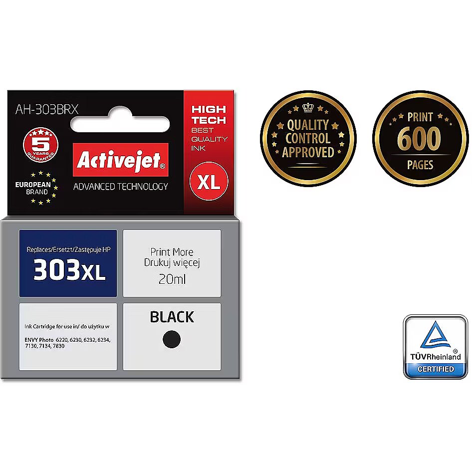 ActiveJet AH-303BRX ink for HP printer, HP 303XL T6N04AE replacement; Premium; 20 ml; black