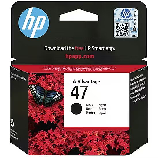 LongSummaryDescription - HP 47 Black Original Cartridge. Black ink type: Pigment-based ink, Cartridge capacity: Standard Yield, Black ink volume: 26 ml, Supply type: Single pack, Printing colours: Black, Quantity per pack: 1 pc(s), Black ink page yield: 1300 pages