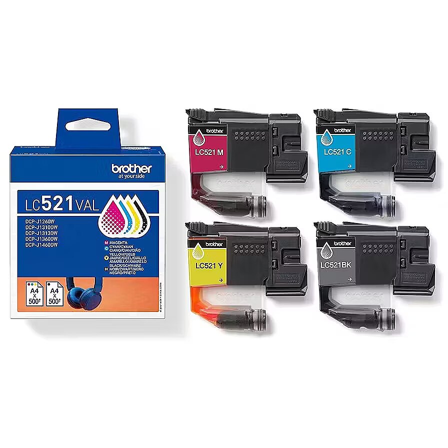 LongProductName - LC521VAL black, cyan, magenta and yellow ink cartridges - multipack. Each cartridge prints 500 pages.
