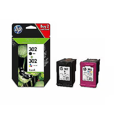 LongSummaryDescription - HP 302 2-pack Black/Tri-color Original Ink Cartridges. Colour ink type: Dye-based ink, Cartridge capacity: Standard Yield, Black ink type: Pigment-based ink, Black ink volume: 3.5 ml, Supply type: Multi pack, Colour ink page yield: 150 pages, Colour ink volume: 4 ml, Printing colours: Black, Cyan, Magenta, Yellow, Quantity per pack: 2 pc(s), Black ink page yield: 170 pages