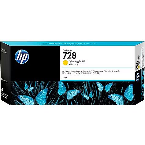 LongSummaryDescription - HP 728 300-ml Yellow DesignJet Ink Cartridge. Compatibility: HP DesignJet T730 Printer, HP DesignJet T830 Multifunction Printer, Print technology: Thermal inkjet, Printing colours: Yellow. Width: 283 mm, Depth: 41 mm, Height: 118 mm. Package width: 283 mm, Package depth: 41 mm, Package height: 118 mm. Master (outer) cases per pallet: 102 pc(s), Products per pallet: 510 pc(s), Layers per pallet: 6 pc(s). Pallet dimensions (W x D x H): 1016 x 1219.2 x 919.48 mm, Pallet dimensions (W x D x H) (imperial): 1016 x 1219.2 x 919.5 mm (40 x 48 x 36.2"), Pallet weight (imperial): 304.4 kg (671 lbs)