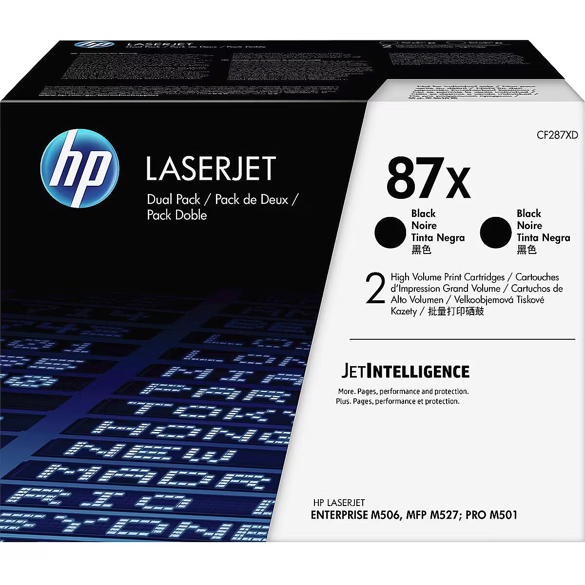 LongSummaryDescription - HP 87X 2-pack High Yield Black Original LaserJet Toner Cartridges. Black toner page yield: 36000 pages, Printing colours: Black, Quantity per pack: 2 pc(s)