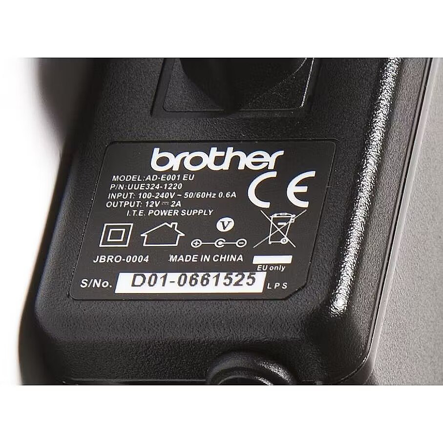 LongSummaryDescription - Brother ADE001EU. Purpose: Label printer, Power supply type: Indoor, Input voltage: 12 V. Product colour: Black. Width: 52 mm, Depth: 135 mm, Height: 100 mm. Package weight: 216 g. Country of origin: China, Products per pallet: 1200 pc(s), Pallet gross height: 14.5 cm