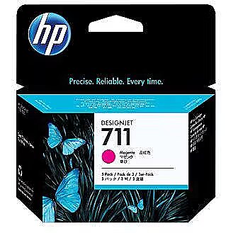 LongSummaryDescription - HP 711 3-pack 29-ml Magenta DesignJet Ink Cartridges. Compatibility: HP DesignJet T120, T520, Printing colours: Magenta, OEM code: CZ135A. Width: 114.8 mm, Depth: 45 mm, Height: 100.1 mm. Package width: 1148 mm, Package depth: 450 mm, Package height: 100.1 mm. Master (outer) cases per pallet: 96 pc(s), Products per pallet: 2304 pc(s), Layers per pallet: 6 pc(s). Pallet dimensions (W x D x H): 1016 x 1219.2 x 1163.3 mm, Stacking number for pallet: 2 pc(s)