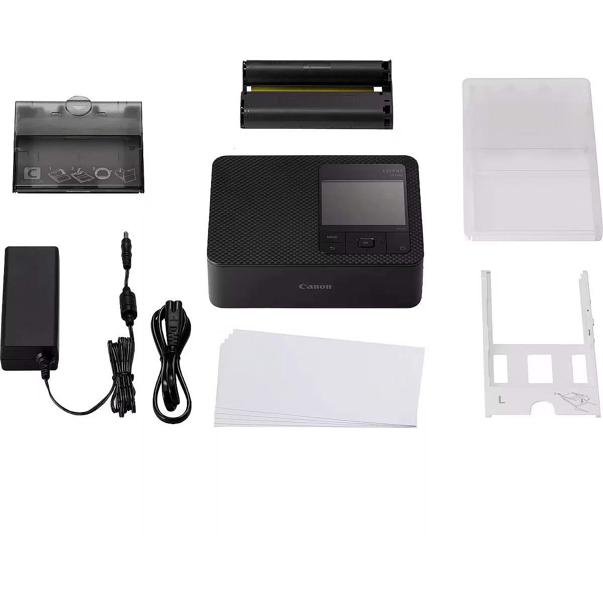 Description - DSC SELPHY CP1500 printer 5539C002 black Beautiful, fast prints that will stay with you for a lifetime Create beautiful, colour-rich prints that will last up to 100 years with this compact photo printer. Direct printing from a variety of devices is quick and easy thanks to wireless operation from your smartphone with the SELPHY Photo Layout app. Beautiful, fast photos Create vivid, point-of-service quality photos with support for 16.7 million colours. Fast sublimation technology allows you to print postcard-ready prints in 41 seconds. Durable prints Thanks to a special protective coating, photos stored in the album will last up to 100 years. They are also resistant to water, scratches and fingerprints. Sizes to suit your needs Print beautiful, vibrant images in a variety of formats, from postcards (100 × 148 mm) to miniature stickers (22 × 17.3 mm). Simple wireless operation Print easily and wirelessly from your mobile device with the SELPHY Photo Layout app. Create customised prints with stamps, filters and pattern overlays and add links via QR code. Compact and stylish This is a printer that fits in with your décor and features easy operation all thanks to its compact size, large LCD screen, wireless connectivity and three fashionable colours. Versatile connectivity options Connect wirelessly to your smart devices with the SELPHY Photo Layout app and to your computer and camera with the USB-C connection or use a USB memory stick. You can also print directly from SD, SDHC and SDXC cards using the built-in reader.