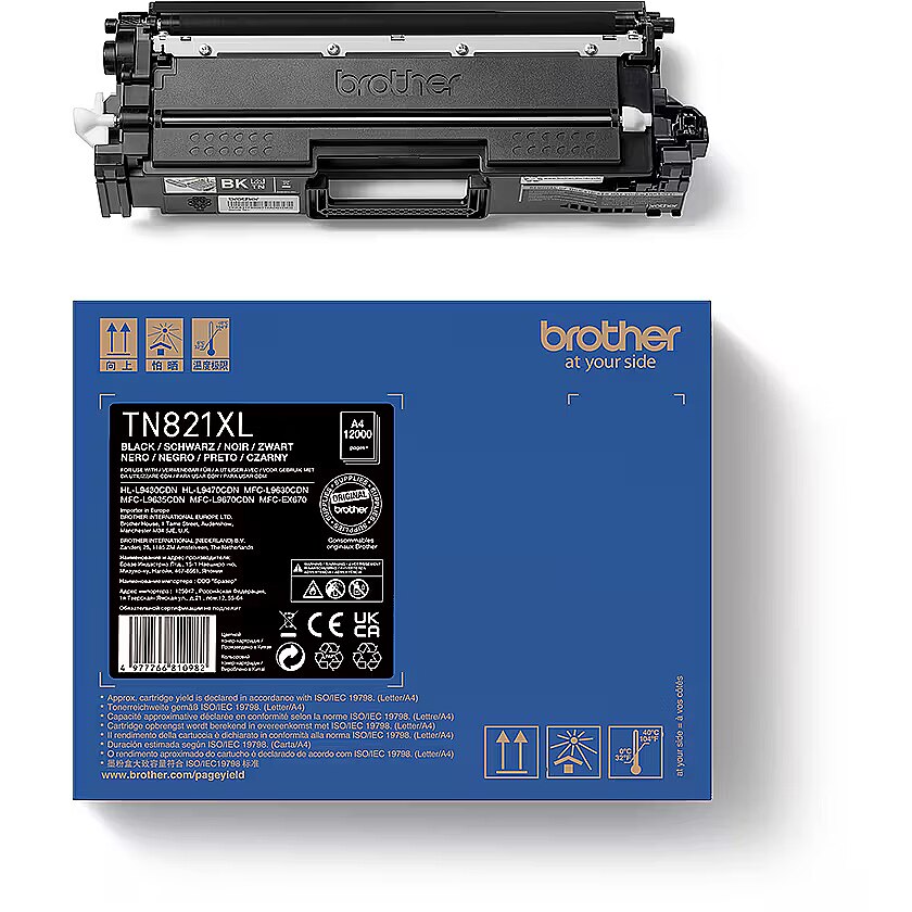 LongSummaryDescription - Brother TN-821XLBK. Black toner page yield: 12000 pages, Printing colours: Black, Quantity per pack: 1 pc(s)