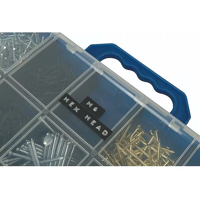 This label printer with an intuitive reverse click system prints cheerful labels and cuts them with ease thanks to an advanced ribbon cutter. Discover your artistic streak and use Omega Embossed Tags to decorate your journals, photo albums or craft projects - maybe even your craft closet or hobby room, whatever! Ergonomic design for more comfortable use Labeling with an intuitive reverse click system Input using a 49-digit wheel Easy insertion of label cartridges through the cartridge slot hatch with a soft-touch grip Durable design for extra long durability The set includes black tape 9 mm × 3 m