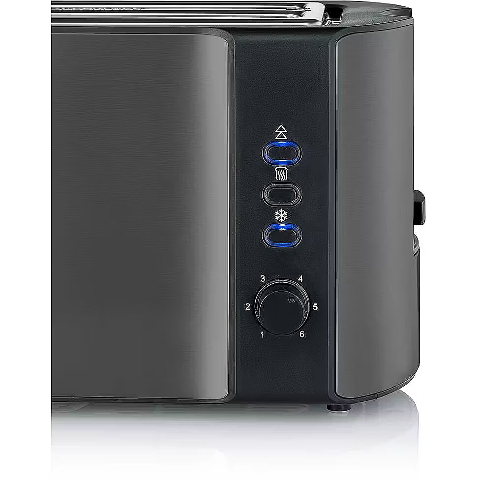 MediumDescription EN - This automatic long slot toaster features a high-quality cool-touch housing for safe use and variable-width bread slots that ensure perfectly even browning. It also comes with an integrated bun warmer, making it easy to reheat bread rolls whenever you like. • Defrost function with indicator lamp
