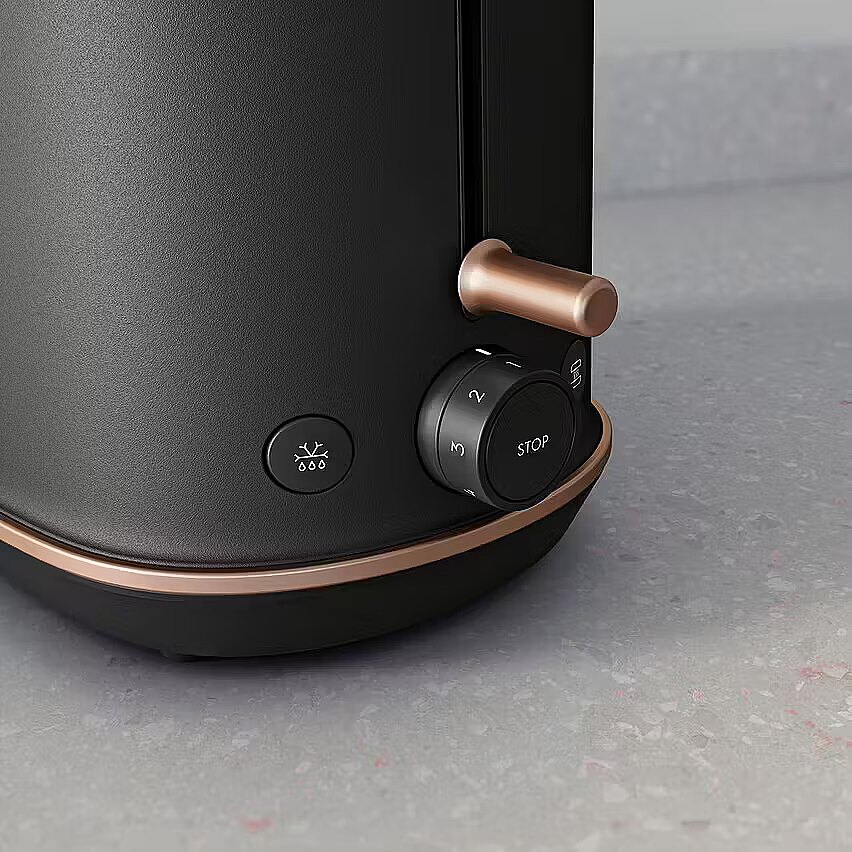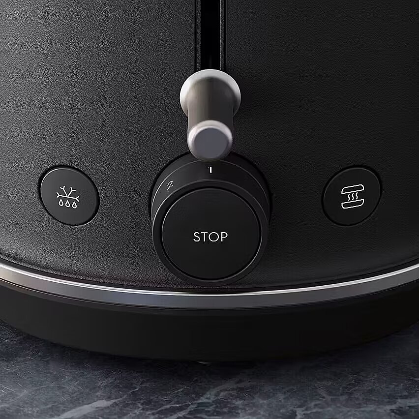 Toster Master 9 oferuje idealne ustawienia dla każdego rodzaju opiekanego pieczywa. Wybierz jedną z siedmiu różnych opcji opiekania, ustawiając niższą moc dla miękkiego pieczywa, jak np. brioszki i wyższą dla twardszego, jak np. ciabatta. Twój tost, Twój wybór. Rozmrażanie lub odgrzewanie za naciśnięciem jednego przycisku