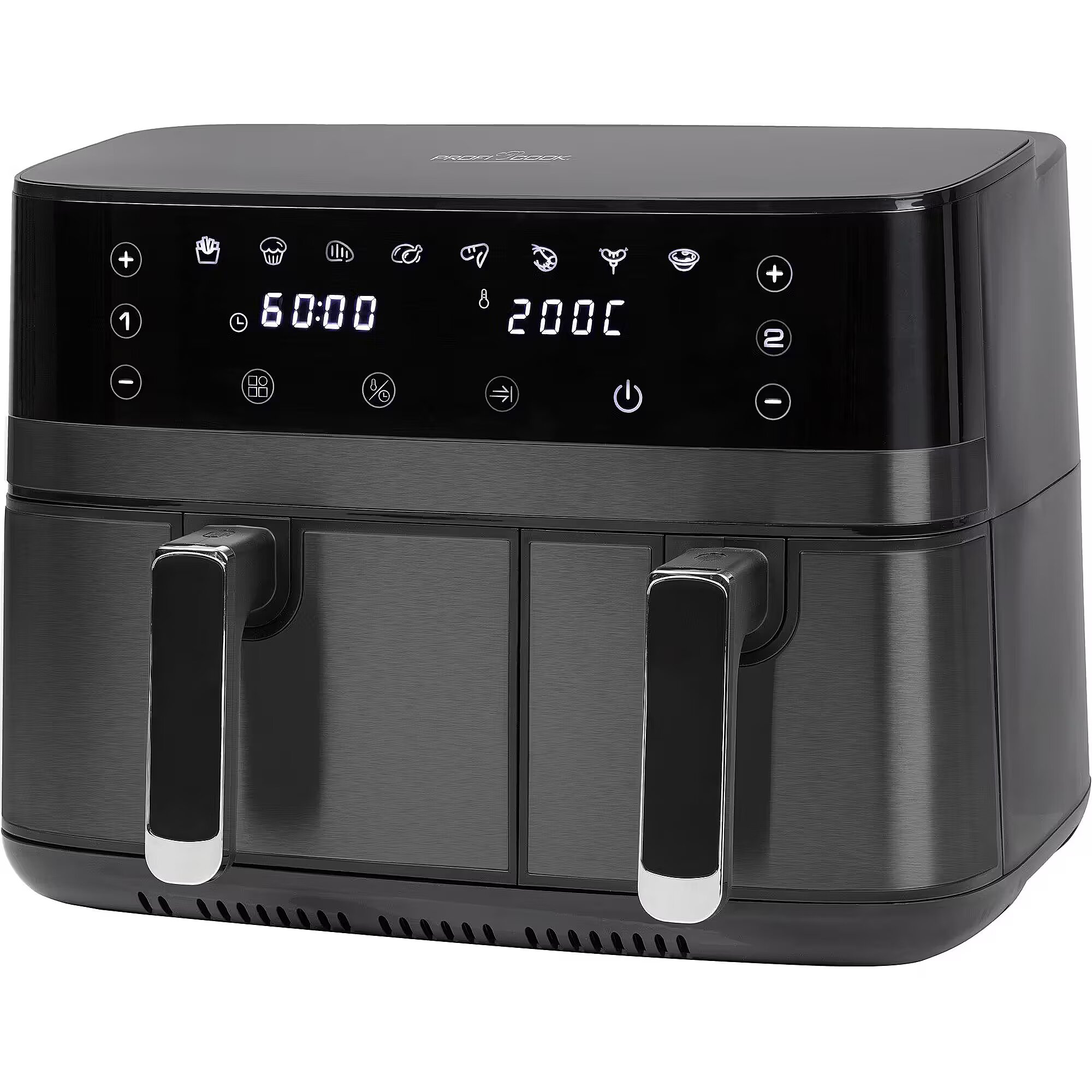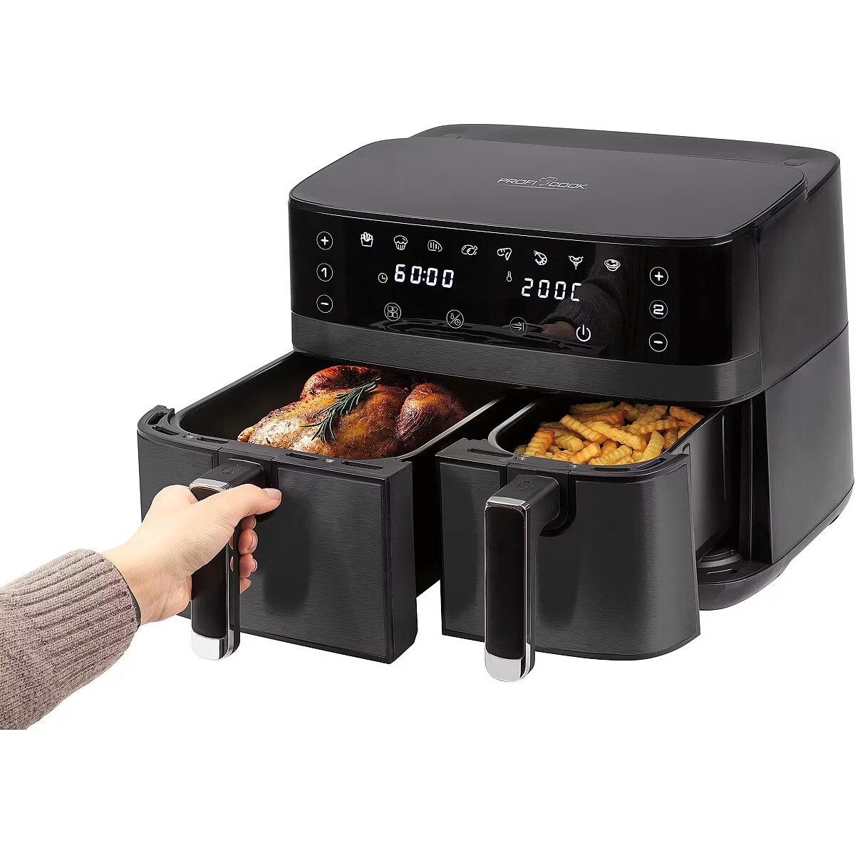Name - ProfiCook double hot air fryer PC-FR 1295 H stainless steel (dark)/black, 2,700 watts, 2 baskets 5.5 + 3.5 liters