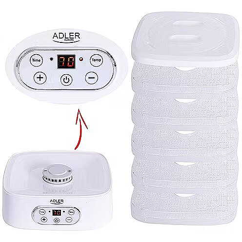 Name - Adler | Food Dehydrator | AD 6658 | Power 230 W | Number of trays 5 | Temperature control | Integrated timer | White