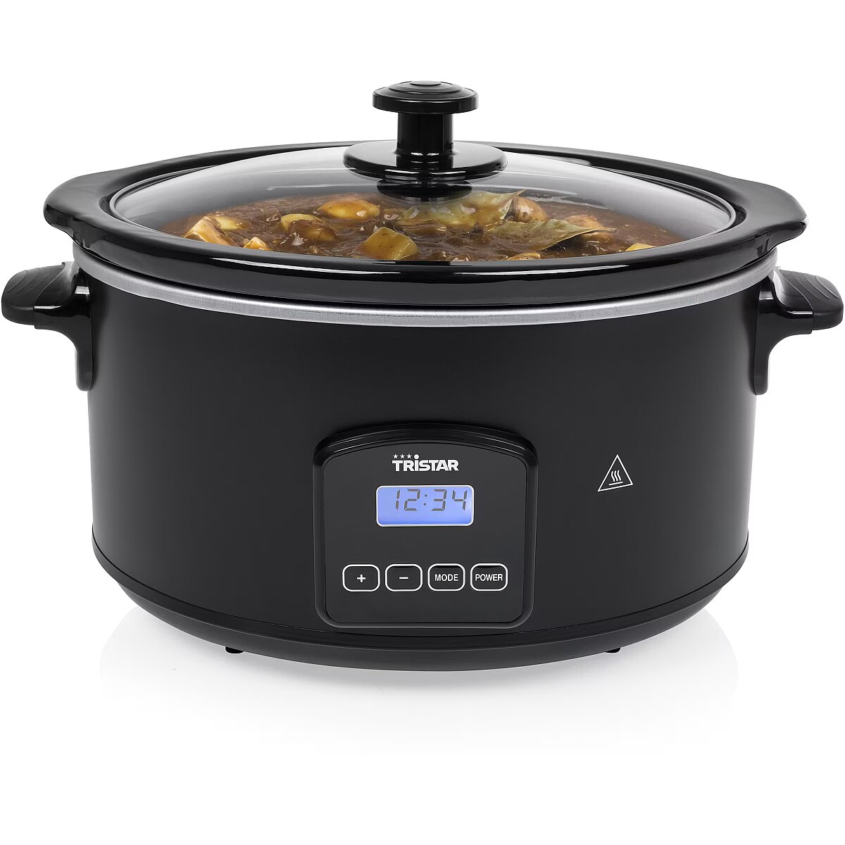 LongDesc - Craving healthy and fresh food when you get home from work, but don’t feel like spending the evening in the kitchen? Use the Tristar slowcooker and prepare your food beforehand. Meals are cooked slowly in the slowcooker which results in meat being more juicy and healthy nutrients being preserved. This Tristar slowcooker has a content of 4.5 liters, so you can cook for your whole family and serve a nice and healthy meal.Healthy food with more tasteBecause the slowcooker prepares food on a low temperature, nutrients are being preserved. Cook a delicious pot roast by adding all ingredients and let the cooker do its work. Ideal when you don’t have enough time to cook, but you still want to put a healthy meal on the table. The slowcooker has a digital screen on which you can adjust many settings, like the timer function. With this setting you can adjust the timer and decide how long and on which temperature the slowcooker must cook your food. This way your dish won’t burn and your food will always be fully cooked.For yourself or your whole familyThanks to the ceramic inner pan of 4.5 liter you can make enough food for your whole family. When you are alone and you feel like eating beef stew, you can use the cooker as well. Because small portions can also be cooked. The Tristar slowcooker has different heating settings. This way you can cook a stew within 3 hours or cook meat up to 10 hours. The cooker also has a function which keeps your food warm. Your food will remain healthy and warm until you decide to serve.Easy to cleanThe Trister slowcooker has a ceramic inner pan which you can take out completely and clean or serve with. Also the outer housing of stainless steel is easy to clean. With a moist towel you can easily clean al the spatters of food.What’s in the box:Tristar slowcooker, removable inner pan, lid, manual