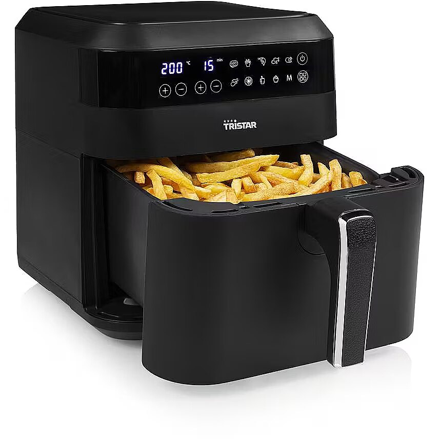 LongDesc - Do you want to make fries or snacks for the whole family in one go? With a capacity of 6 liters, the FR-6999 Digital Airfryer XXL is the perfect airfryer for you. Bake fries, snacks, chicken legs, potato slices, fish and other dishes even healthier without the use of oil.Extensive digital control panelThis Airfryer, unique to Tristar, has a digital touch control panel with LCD screen, which makes the Fryer extra easy to use. Select one of the 10 pre-programmed baking programs or set your own baking time and temperature. The temperature can be set from 80⁰C to 200⁰C and the timer with signal up to 60 minutes. With a power of 1700 Watts, the fryer reaches the right temperature very quickly.Good resultsThe Tristar Digital Airfryer XXL has an extra-large capacity in which you can bake up to 1.5 kg of fries at the same time: enough for the whole family! Thanks to the technology in which hot air circulates at high speed, you get a very crispy result without oil or with a little bit of oil, making the fries much less fat and healthier. However, that's not the only thing: you can also bake, grill or roast with the Digital Airfryer. In this way you can easily prepare meat or fish dishes and vegetables in the airfryer, but also sandwiches, cake or pie.Easy to cleanFor extra ease of use, the Tristar Airfryer XXL has a non-stick coating that is very easy to maintain and also easy to clean. Because you can easily remove the basket from the fryer, cleaning is also done in no time.Safe to useThe FR-6999 Digital Fryer is safe to use. The airfryer is equipped with overheating protection, so you don't have to worry about the airfryer overheating. In addition, you can also safely remove the basket from the airfryer by means of the cool touch handle. This technology keeps the handle always cold. Finally, the airfryer is equipped with anti-slip feet so that it always remains firmly on the counter.