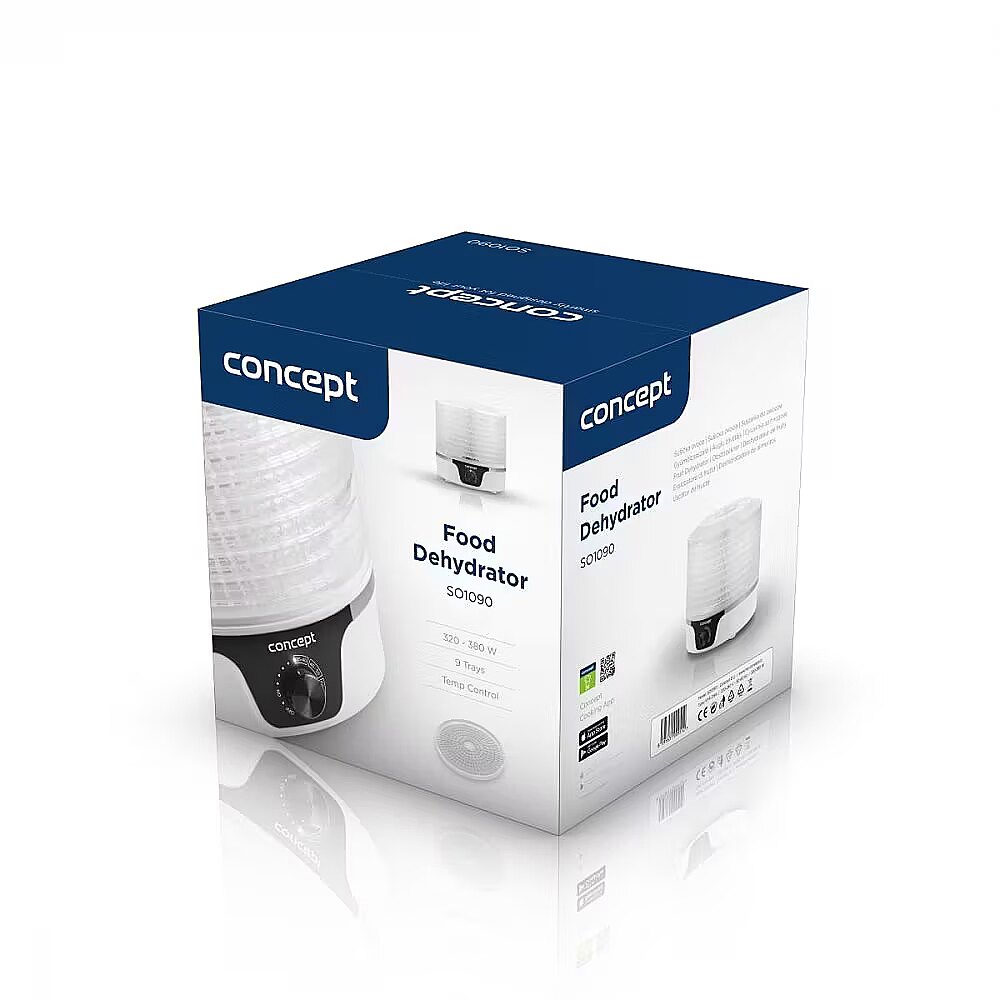 Description - SO1090 food dehydrator Extend the shelf life of your food Drying is one of the few methods of storing food without losing important vitamins and minerals. So why not extend the shelf life of your excess supplies? Large crops to dry The SO1090 dryer is equipped with 9 drying screens that provide an appropriately large drying surface. You can adjust the drying temperature from 35 to 70 ° C, which is very practical because each food requires a different drying temperature. You can dry almost anything: fruit, vegetables, mushrooms, herbs, flowers and pasta. Thanks to the SO1090 dryer, excess crops will not surprise you. Even drying The dryer is equipped with an integrated fan that distributes hot air between individual floors. To obtain an even more effective result, we recommend rearranging the sieves so that the lower sieves move upwards and vice versa during drying. You will be sure that your crops will be dried evenly on all floors of the dryer.