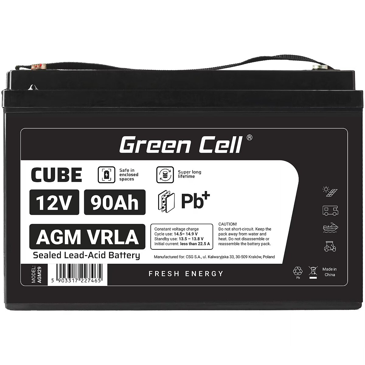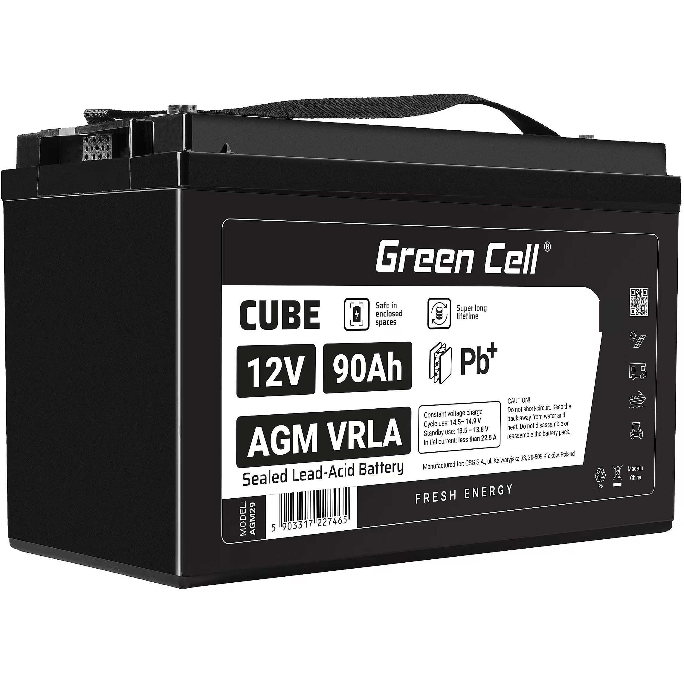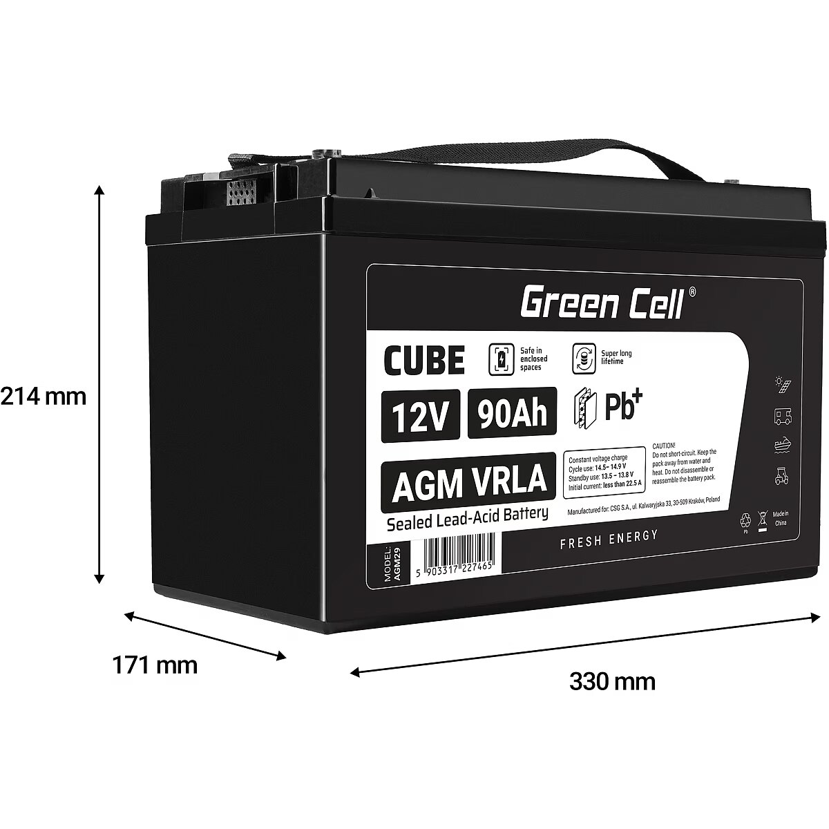 Green Cell CUBE AGM IP54 12V 90Ah VRLA Battery Gel deep cycle scooter mower boat barge mower tractor fishing boat