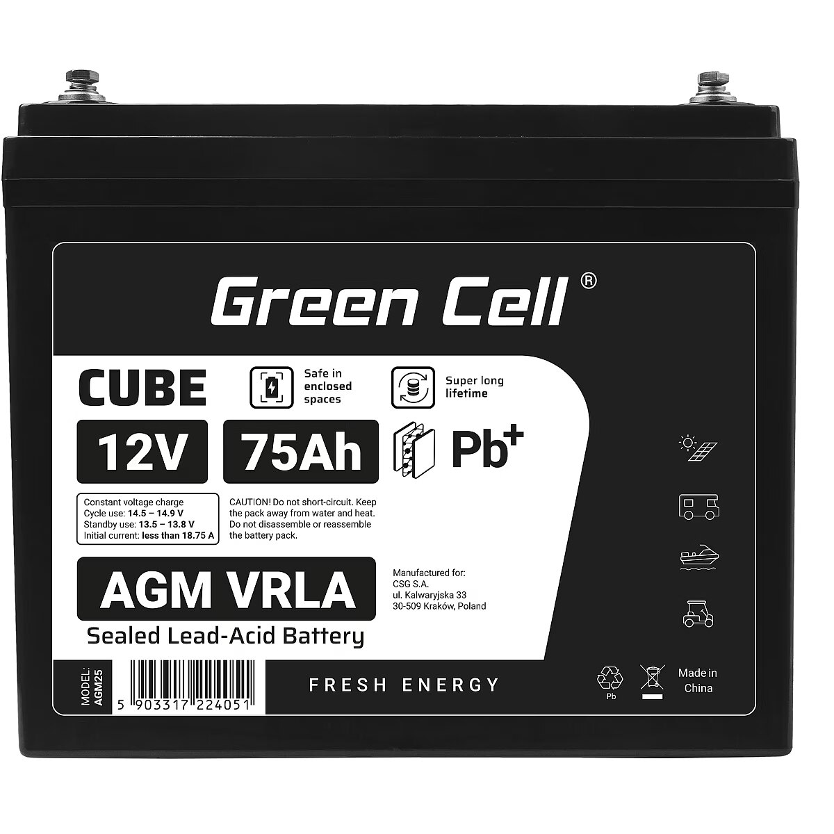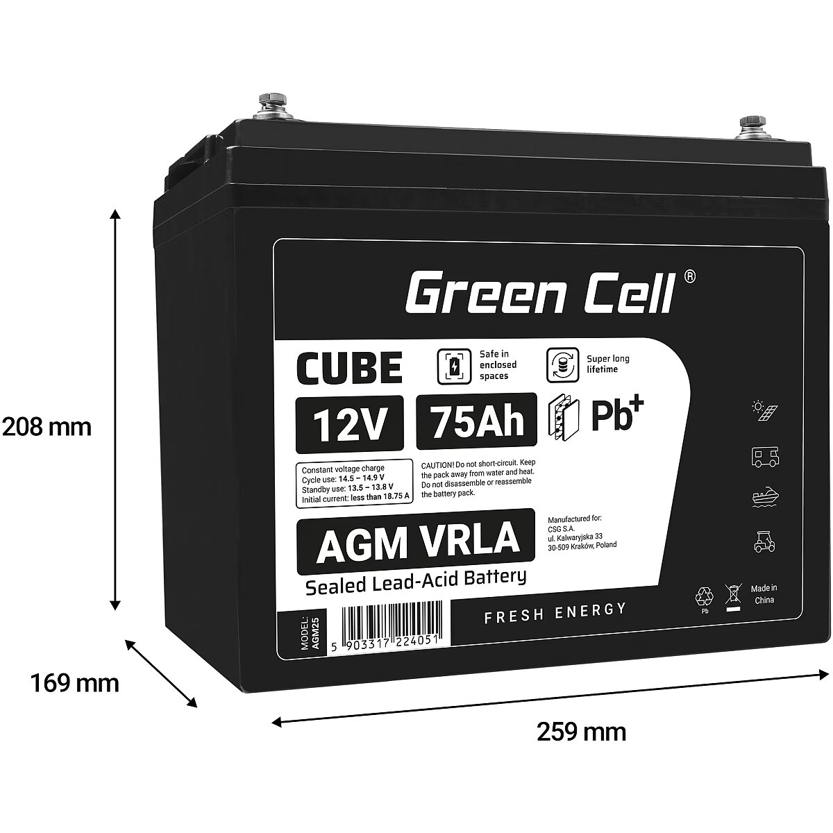 Green Cell CUBE AGM IP54 12V 75Ah VRLA Battery Gel deep cycle powerchair photovoltaic leisure battery campervan