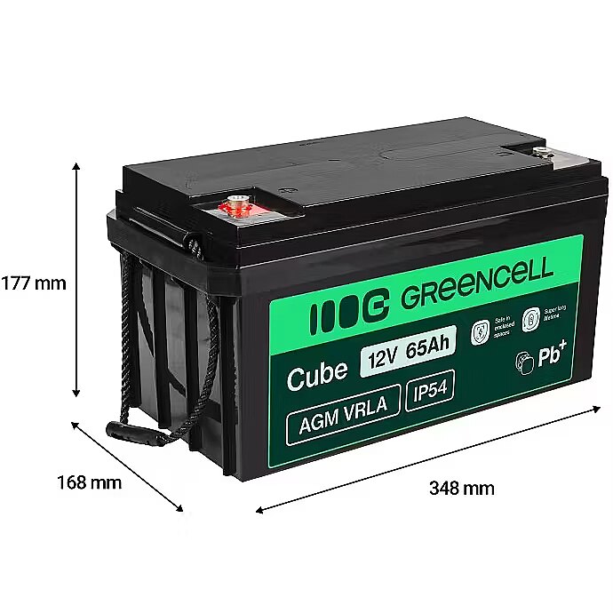 Description - Akumulator AGM VRLA 12V 65Ah IP54 Bezpieczeństwo na najwyższym poziomie - certyfikat IP54 zapewnia ochronę przed kontaktem z częściami niebezpiecznymi akumulatora, a także gwarantuje jego pyłoszczelność i wodoodporność. Długa i bezpieczna praca akumulatora - aż do 5 lat bezawaryjnego i bezobsługowego działania, niezależnie od warunków użytkowania akumulatora. Technologia AGM VRLA - elektrolit jest zamknięty w separatorach z maty szklanej, co eliminuje ryzyko wycieku i pozwala na pracę akumulatora w dowolnej pozycji, bez konieczności uzupełniania elektrolitu. Doskonały do pracy buforowej i cyklicznej - dzięki wysokiemu prądowi rozładowania i możliwości działania w dowolnej pozycji, akumulator AGM Cube IP54 znajduje szerokie zastosowanie, idealnie sprawdzając się w pracy buforowej i cyklicznej.