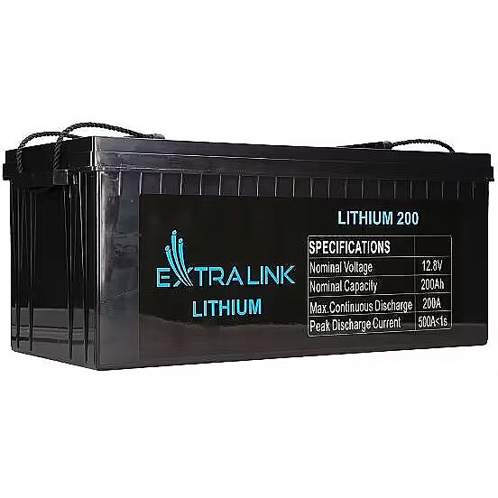 Description - LiFePO4 Extralink lithium iron phosphate batteries with a nominal capacity of 200Ah offer a whole range of benefits compared to traditional solutions based on batteries made in other technologies. Extralink LiFePO4 means longer life, no maintenance, extreme safety, light weight, improved discharge and charge efficiency. LiFePO4 batteries, due to their long life and zero maintenance, are the best investment for many years. The most important features of LiFePO4 Extralink batteries: LiFePO4 12V battery with a nominal capacity of 200Ah Energy storage with a large number of duty cycles for emergency power supply Maintenance-free BMS LiFePO4 battery with low weight No memory effect The perfect battery for a motorhome, yacht Fully maintenance-free LiFePO4 batteries LiFePO4 200Ah Extralink batteries do not require active maintenance to extend their life. In addition, these batteries do not have a memory effect, and the low self-discharge rate (less than 3% per month) of the LiFePO4 battery means that they can be stored for a long time. Low weight and high power density of LiFePO4 batteries 12V Lithium Iron Phosphate (LiFePO4) batteries offer a high power density, making the lithium battery relatively small and lightweight. Compared to lead-acid Extralink LiFePO4 batteries, it provides a high energy density and is at least half the weight. Choose Extralink LiFePO4 if you want to reduce your worries about battery weight and size! LiFePO4 type battery with a large number of work cycles LiFePO4 batteries withstand over 2000 cycles while maintaining an average of 80% of their nominal capacity. For comparison: a traditional lead-acid battery lasts 300-500 cycles at most. The long life makes the LiFePO4 Extralink battery an excellent economic choice. Wide range of LiFePO4 battery applications The Extralink LiFePO4 12V Lithium Iron Phosphate battery is an ideal energy storage for cars, buses, logistic vehicles, boats, emergency power supply, etc. due to its safety and low cost advantages. Perfect as a motorhome battery.