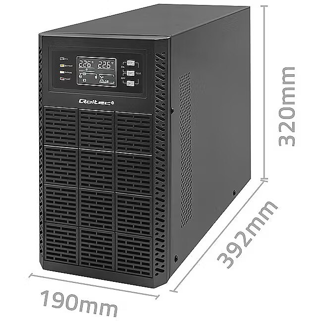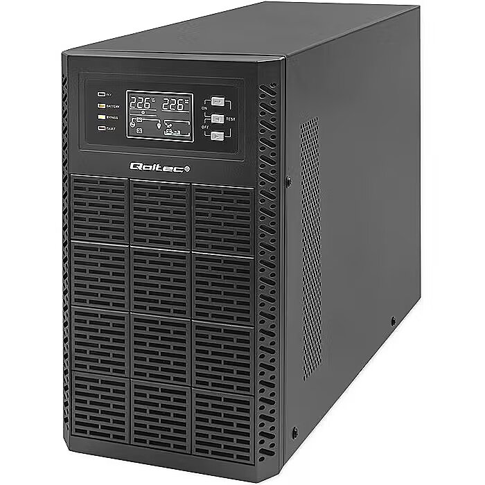 productName - Qoltec Uninterruptible Power Supply (UPS) | 3kVA | 3000W | Power Factor 1.0 | LCD | EPO | USB | Online