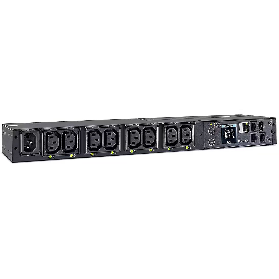 LongSummaryDescription - CyberPower PDU41004. PDU types: Managed, Switched, Rack capacity: 1U, Type: Single-phase. AC outlets quantity: 8 AC outlet(s), AC outlet types: C13 coupler, Power plug: C14 coupler. LED indicators: Link, Status, Cable length: 3.05 m, Security algorithms: 802.1x RADIUS, HTTPS, SSH, SSL/TLS. Supported network protocols: IPv4/v6, SNMPv1/v3, HTTP/HTTPs, TCP/IP, UDP, DHCP, NTP, DNS, SMTP, SSH, SSL, TLS, Telnet, FTP,..., Firmware upgradeable via: USB. Nominal input voltage: 100 - 240 V, Maximum current: 12 A, AC input frequency: 50 / 60 Hz