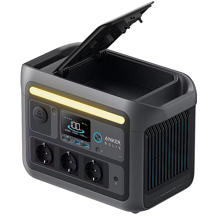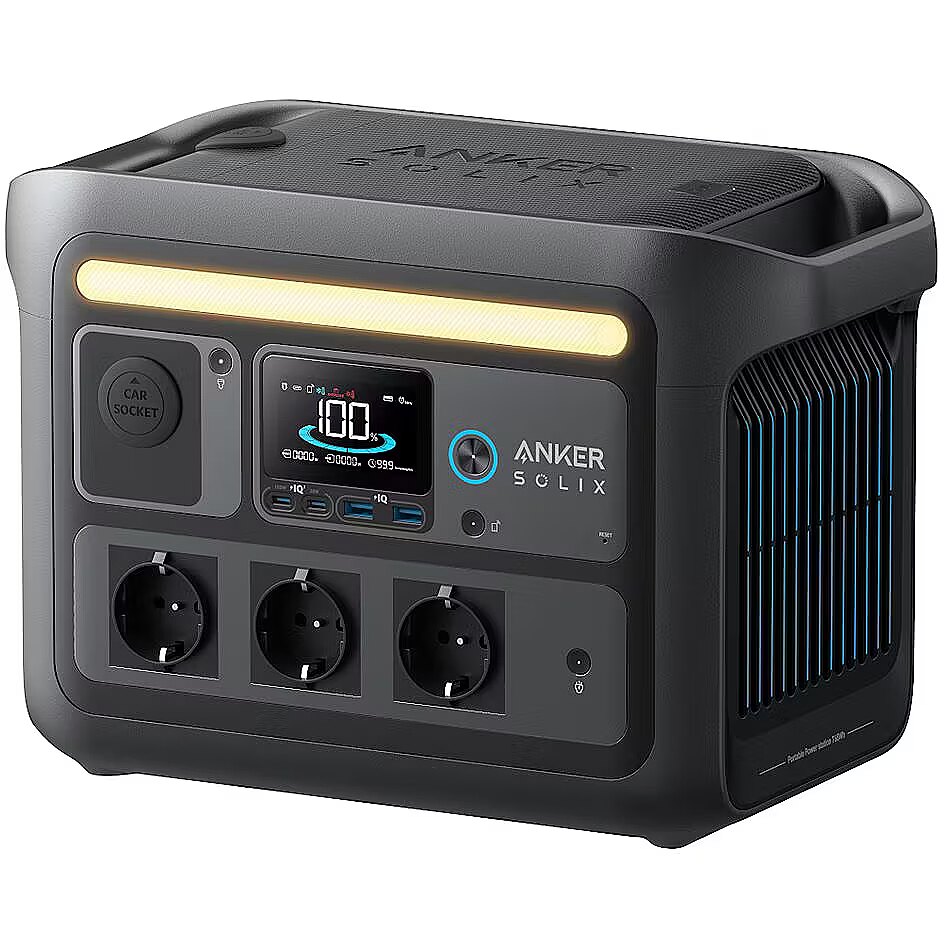 description_en - With the Anker Solix C800X Portable Power Station, you'll always have reliable power at your fingertips, wherever you go. Whether you're hiking, taking a road trip with friends, or just enjoying a nice day outdoors, this power station will make sure you're always powered. From charging your phone or laptop to cooling your drinks or enjoying a refreshing breeze from a fan on a hot summer day, the Solix C800X will help you enjoy every adventure to the fullest. This power station is equipped with a multi-purpose light that can be used in three different ways: as a flashlight, mood light, or warm light. The light is IP65 waterproof and has an automatically rechargeable storage compartment, ensuring reliable lighting in any situation. Thanks to the telescopic arm and convenient uniball mount, setting up the light is quick and easy - the perfect solution for your campsite. 768 Wh and High-Performing 1200 W Rated Power No Energy Limits with 1600 W SurgePad Tech Built-In Storage Keeps Gear Safe and Organized 6× Longer-Lasting LFP Batteries with 3,000 Cycles HyperFast™ Recharging to 100% in 58 Mins 8 Ports Connect Multiple Devices 300 W Max Solar Input Remote App Control 3-mode Camping Lights