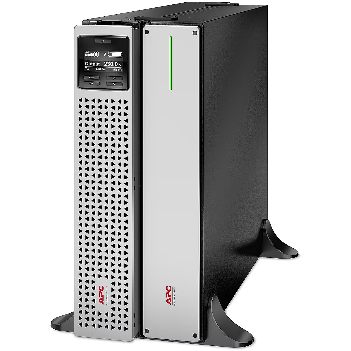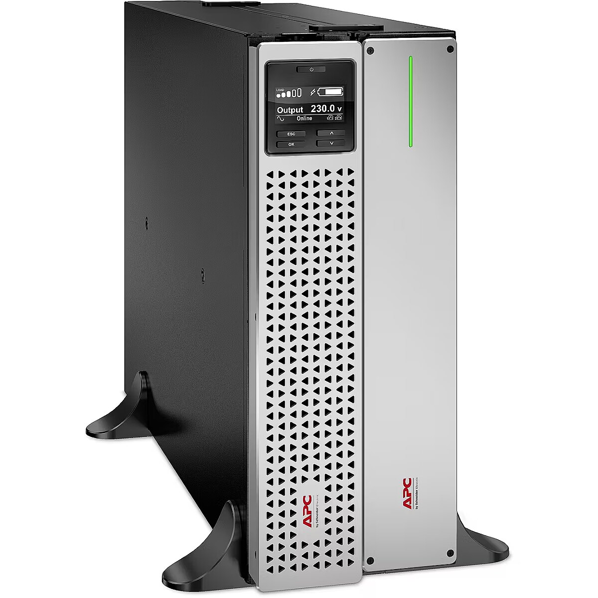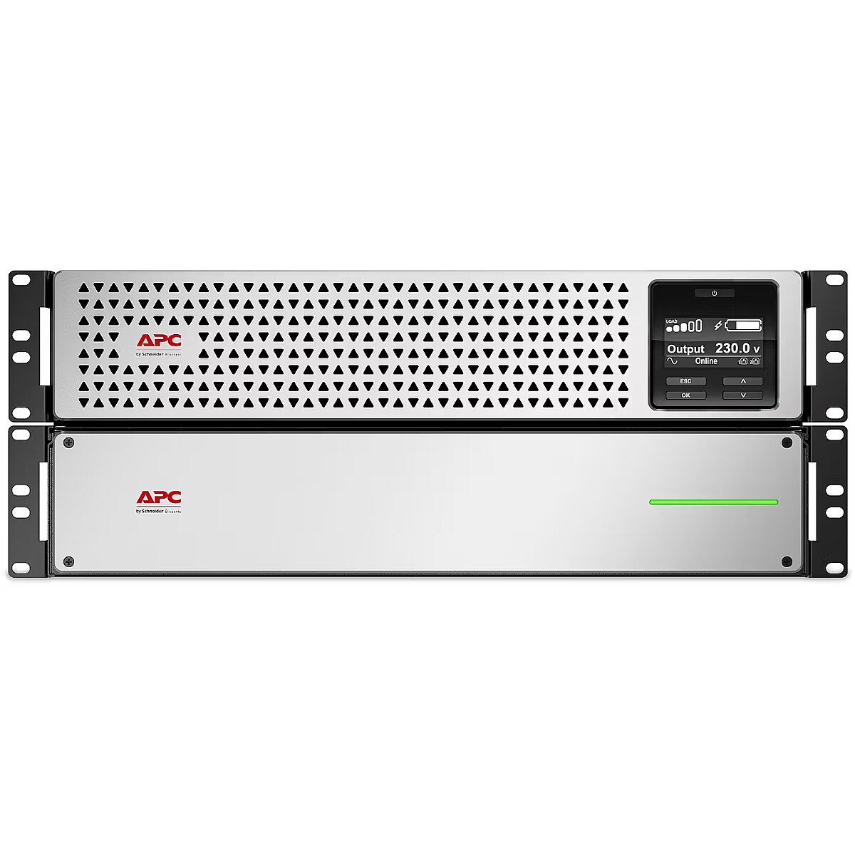 LongSummaryDescription - APC Smart-UPS On-Line, 2200VA, Lithium-ion, Rackmount 4U, 230V, 6x C13+2x C19 IEC outlets, Network Card, Extended long runtime, Rail kit included. UPS topology: Double-conversion (Online), Output power capacity: 2.2 kVA, Output power: 1980 W. AC outlet types: C13 coupler, C19 coupler, AC outlets quantity: 8 AC outlet(s). Battery technology: Lithium-Ion (Li-Ion), Battery voltage: 48 V, Battery life (max): 10 year(s). Form factor: Rackmount/Tower, Product colour: Black, Silver, Rack capacity: 4U. Sustainability certificates: Green Premium