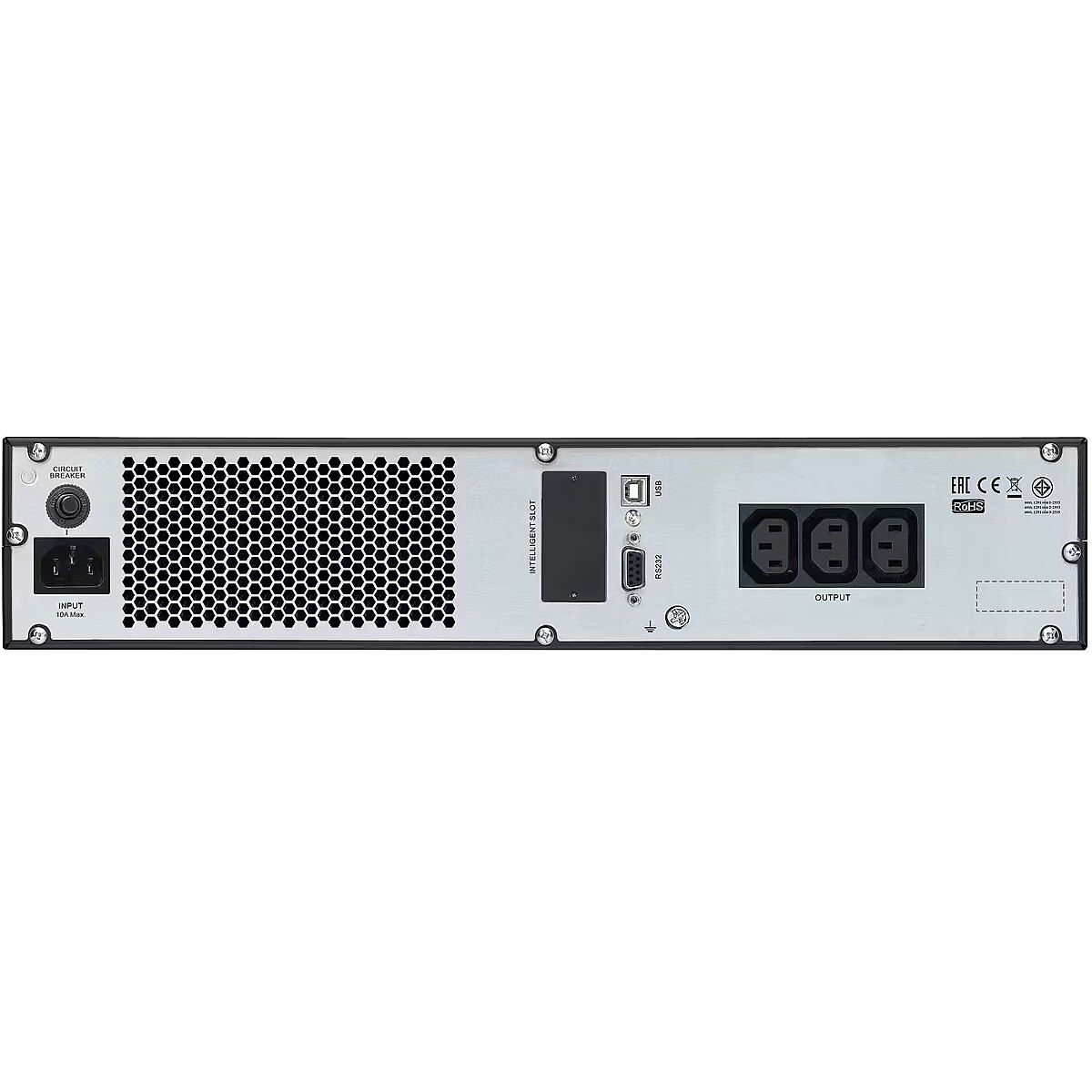 LongSummaryDescription - APC SRV1KRIRK. UPS topology: Double-conversion (Online), Output power capacity: 1 kVA, Output power: 800 W. Power plug: C14 coupler, AC outlets quantity: 3 AC outlet(s), Serial interface type: RS-232. Form factor: Rackmount, Product colour: Black, Display type: LCD. Compliance certificates: RoHS, Certification: CE, IEC 62040-1-1, IEC 62040-1-2 REACH. Width: 437 mm, Depth: 312 mm, Height: 86 mm