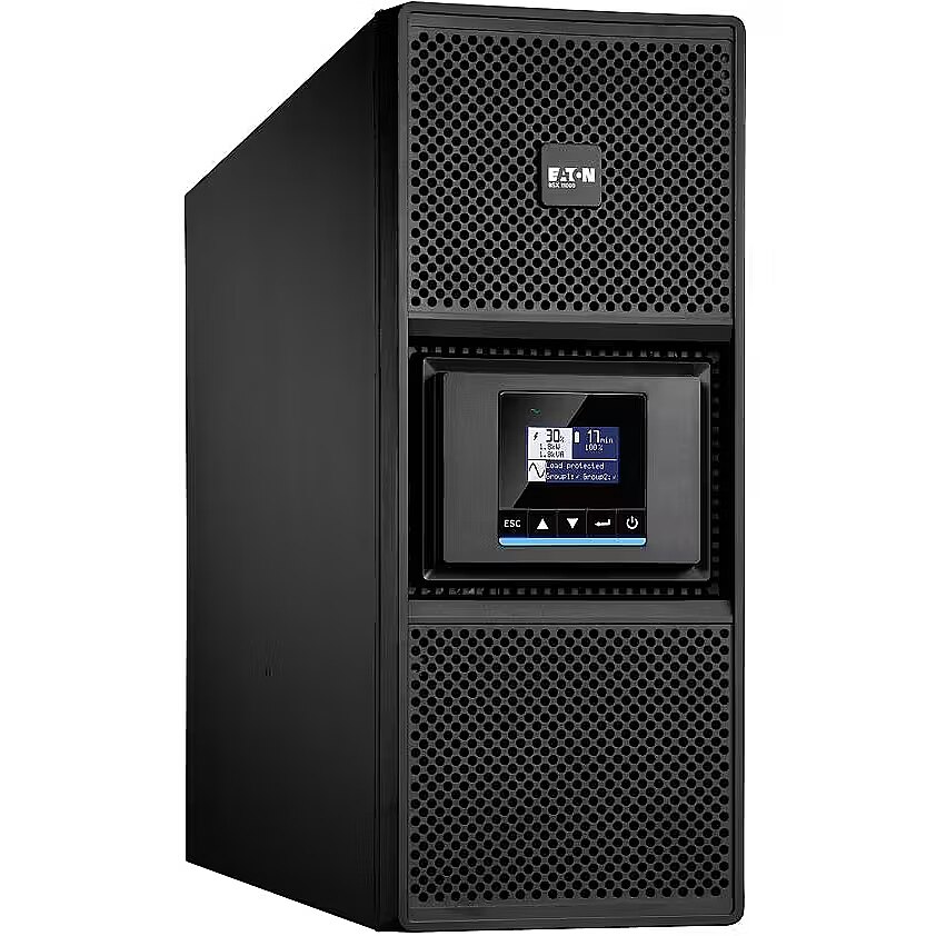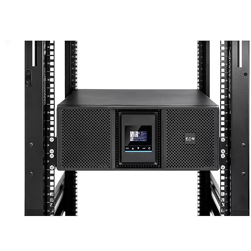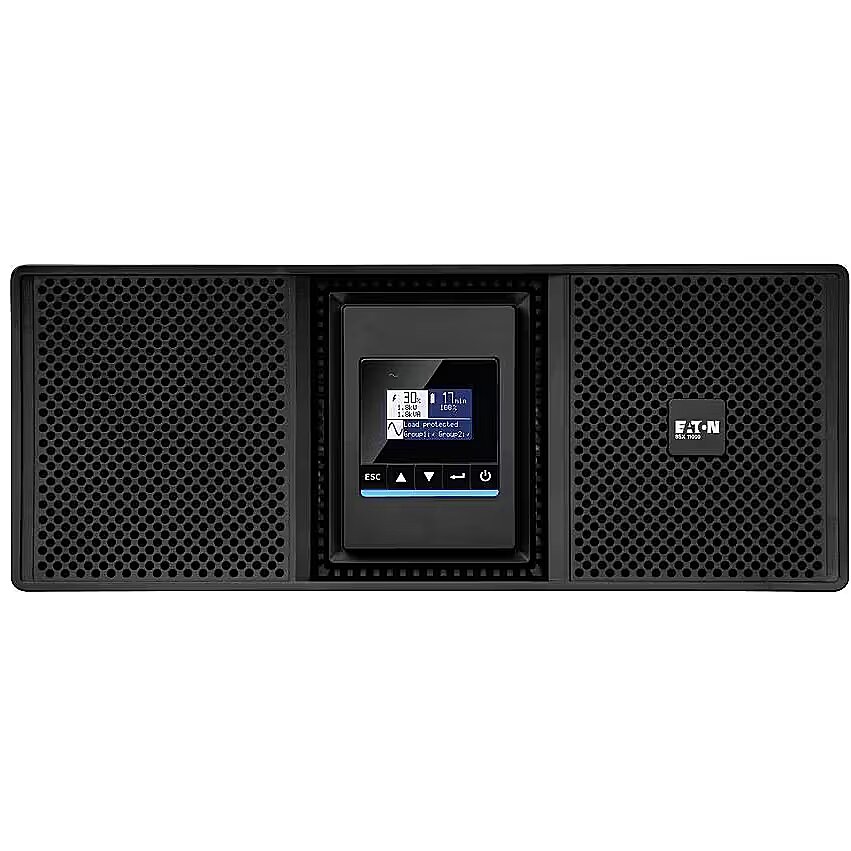 Special functions - Stale reguluje napięcie i częstotliwość Sprawność do 96,7%, certyfikat Energy Star, redukcja kosztów energii i chłodzenia Obudowa 4U Współczynnik mocy = 1 zapewnia wyższą moc czynną, co pozwala ochronić więcej urządzeń Wewnętrzny bypass zapewnia ciągłość pracy w przypadku awarii Graficzny wyświetlacz LCD Baterie wymienialne "na gorąco"