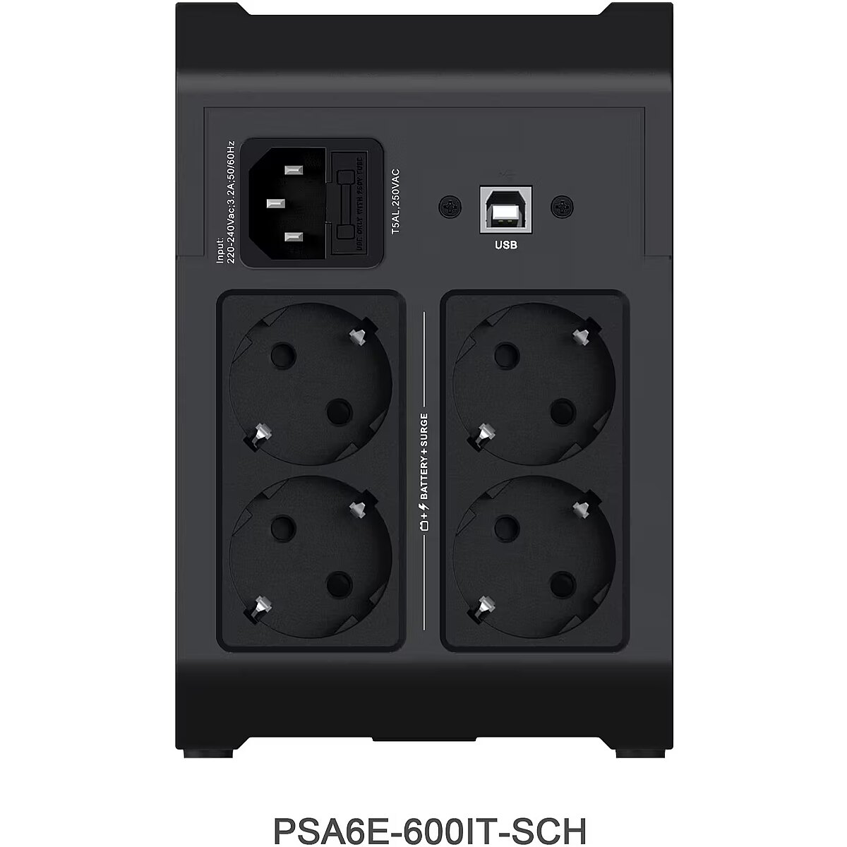 LongProductName - PowerUPS 200 Essential PSA6E-600IT-SCH, 600VA/315W, AVR, User-Replaceable Batteries, Battery Backup, 4 Schuko Outlets