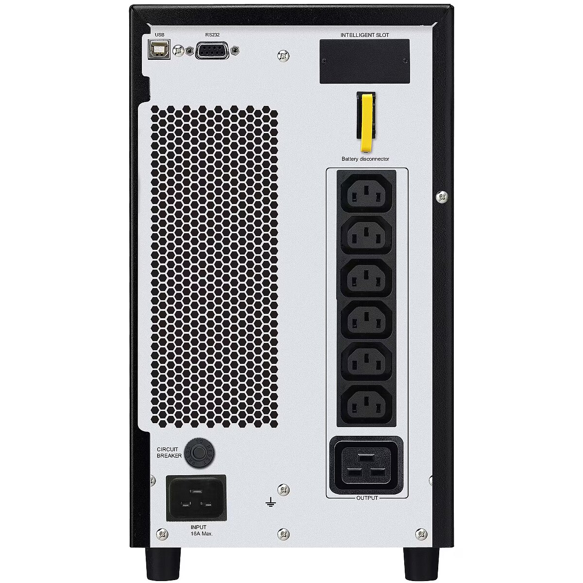 LongSummaryDescription - APC SRV3KI. UPS topology: Double-conversion (Online), Output power capacity: 3 kVA, Output power: 2400 W. AC outlet types: C13 coupler, Power plug: C19 coupler, AC outlets quantity: 6 AC outlet(s). Battery capacity: 9 Ah, Battery capacity: 48 VAh, Battery voltage: 12 V. Form factor: Mini Tower, Product colour: Black, Display type: LCD. Cables included: Input power cable, Output power cable, RS-232, USB cable
