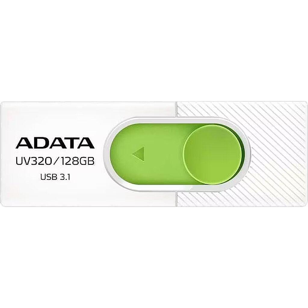 LongSummaryDescription - ADATA UV320. Capacity: 128 GB, Device interface: USB Type-A, USB version: 3.2 Gen 1 (3.1 Gen 1). Form factor: Slide. Weight: 7.9 g. Product colour: Green, White