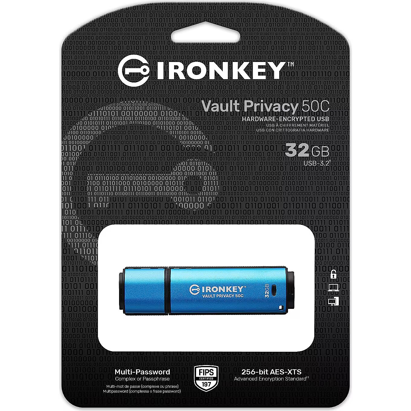 Kingston IronKey Vault Privacy 50C, 32GB, AES-256, Blue