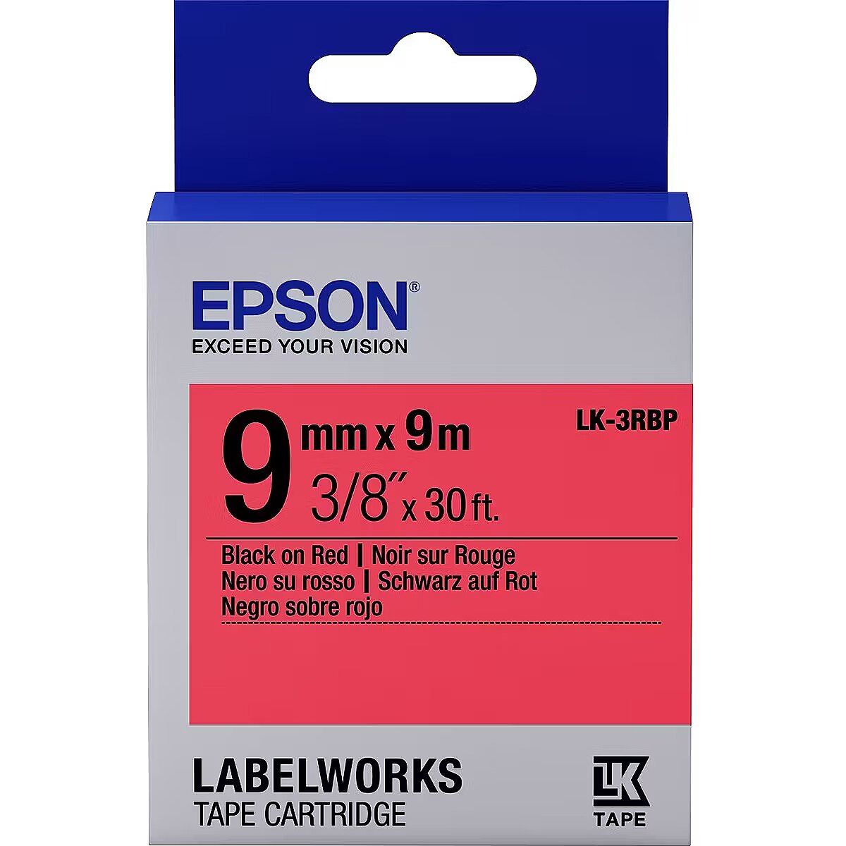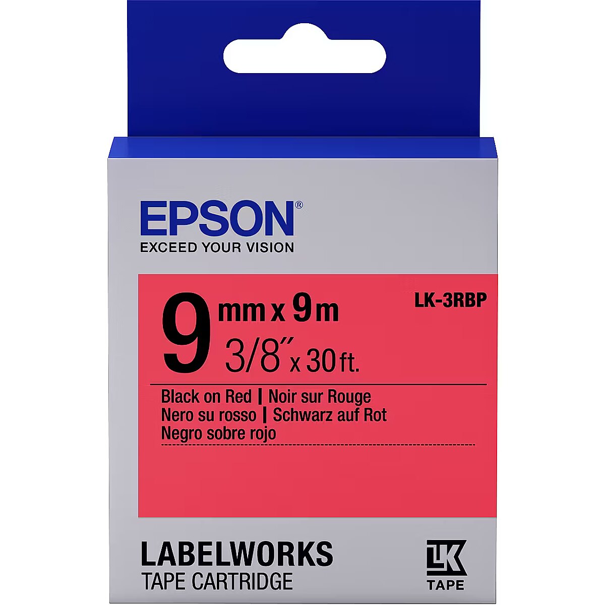 LongSummaryDescription - Epson Label Cartridge Pastel LK-3RBP Black/Red 9mm (9m). Label colour: Black on red, Country of origin: Japan, Compatibility: LabelWorks LW-1000P LabelWorks LW-300 LabelWorks LW-400 LabelWorks LW-400VP LabelWorks LW-600P.... Tape width: 9 mm, Tape length: 9 m, Quantity per pack: 1 pc(s). Pallet gross width: 80 cm, Pallet gross length: 120 cm, Pallet gross height: 9.74 m