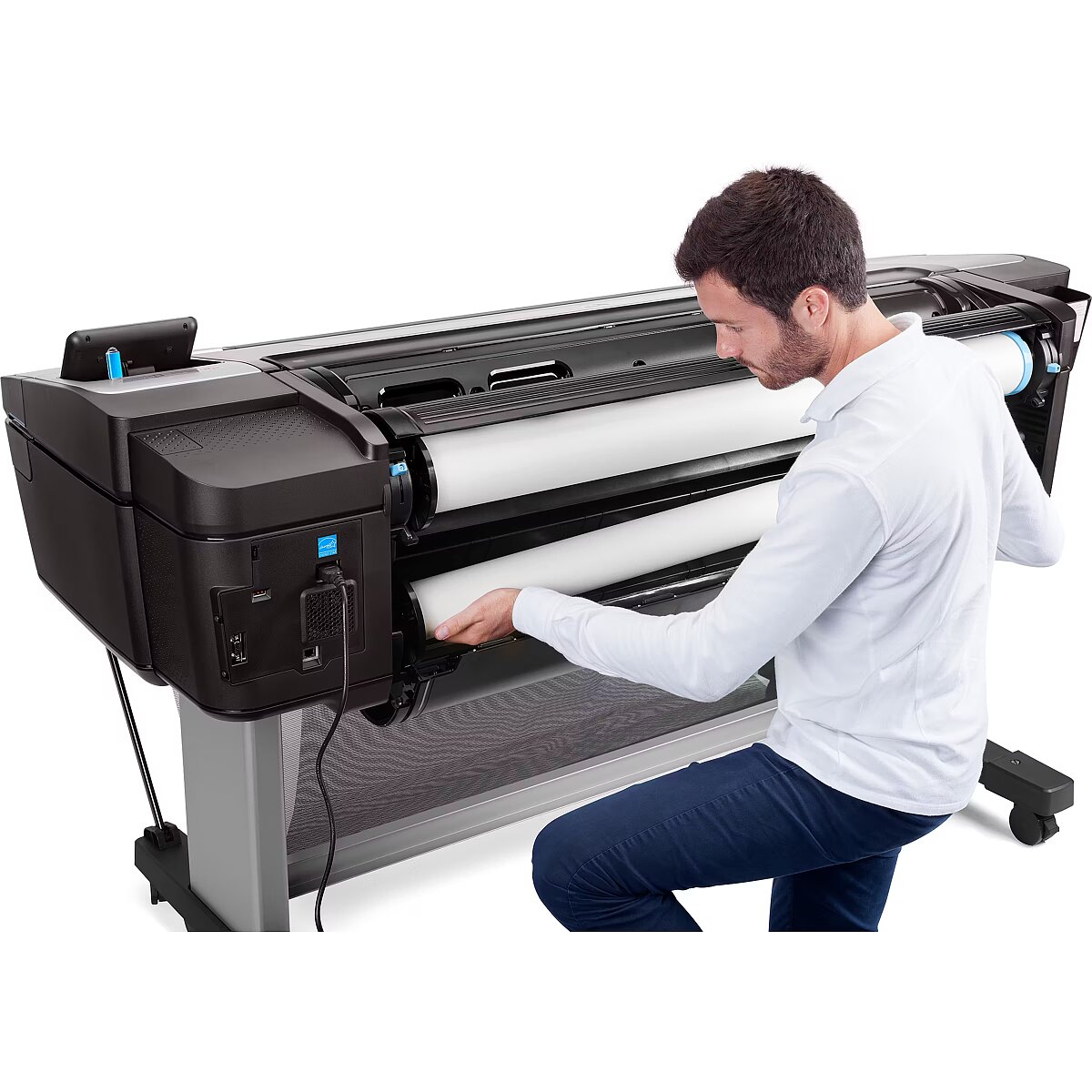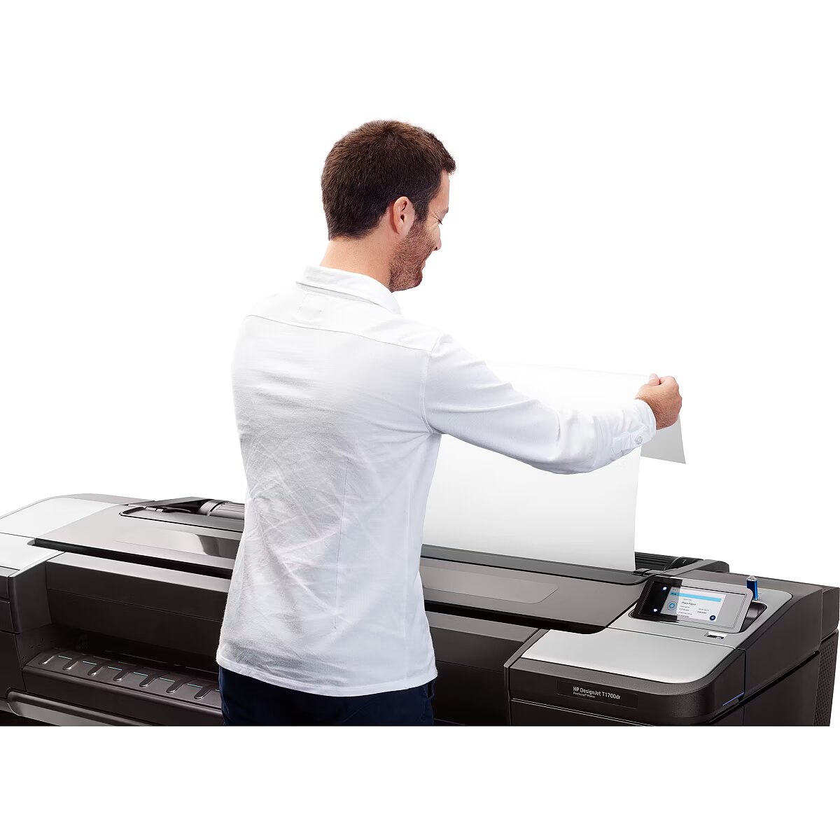 LongDesc - Confidently take CAD, GIS colour reproduction to the next level with a 44-in (1118 mm) printer that delivers powerful security features, high productivity on even the most complex files with the Adobe PDF driver[2], and bright and precise colours.Dynamic security enabled printer Certain HP printers are intended to work only with cartridges that have a new or reused HP chip or electronic circuitry. These printers use dynamic security measures to block cartridges using a non-HP chip or electronic circuitry. Periodic firmware updates will maintain the effectiveness of these measures and block cartridges that previously worked. Reused HP chips and electronic circuitry enable the use of reused, remanufactured, and refilled cartridges.