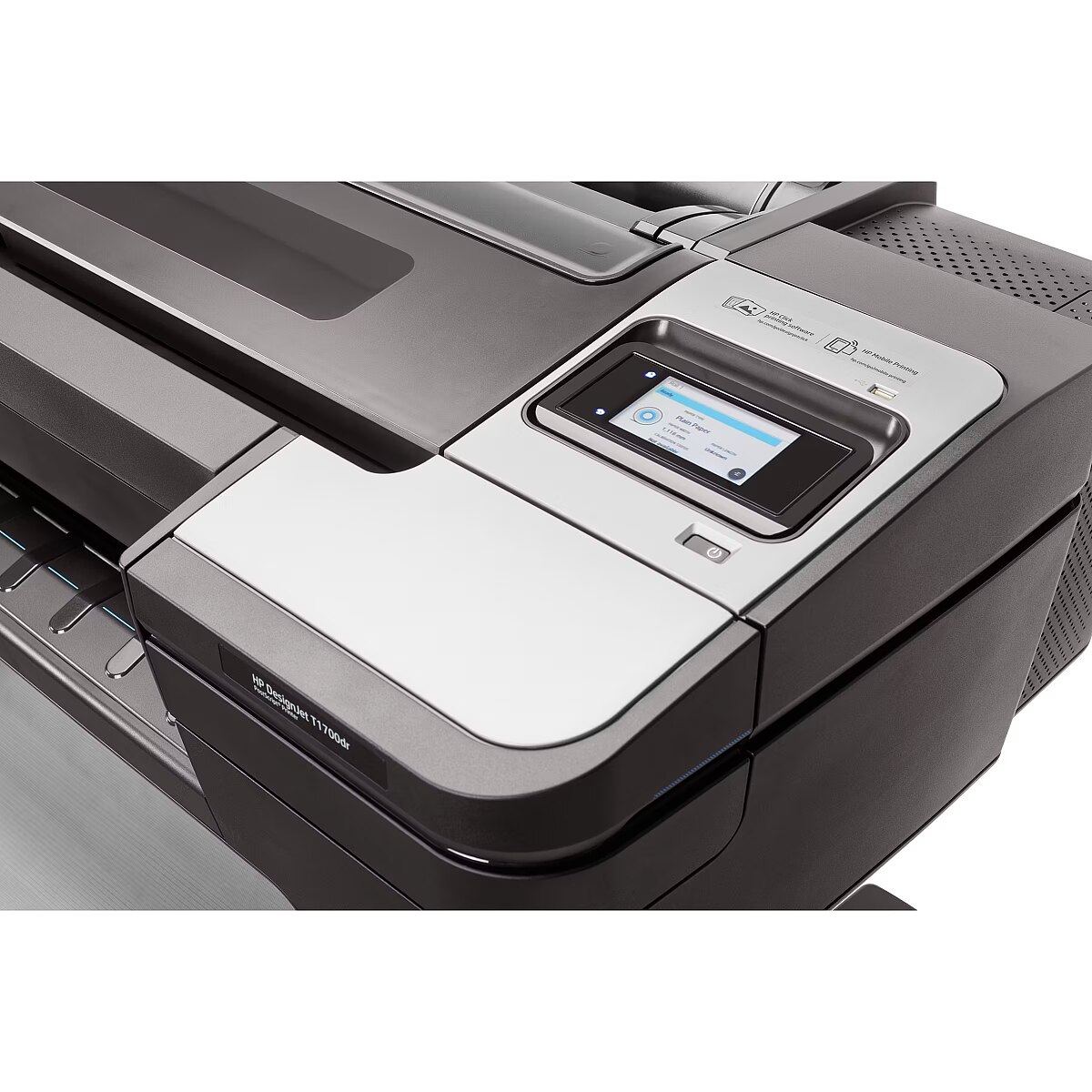 LongSummaryDescription - HP Designjet T1700dr 44-in PostScript Printer. Print technology: Thermal inkjet, Maximum resolution: 2400 x 1200 DPI, Page description languages: PDF 1.7, PostScript 3, TIFF, HP-GL/2, URF, JPEG, CALS G4. Accuracy: 0.1%. Maximum print size: 1118 x 1676 mm, Paper tray media types: Bond paper, Coated paper, Glossy paper, Heavy paper, Matte paper, Photo paper, Satin paper,..., ISO A-series sizes (A0...A9): A0, A1, A2, A3, A4. USB connector: USB Type-A, Ethernet LAN data rates: 10,100,1000 Mbit/s, Mobile printing technologies: HP ePrint. Product colour: Black, Internal memory: 4096 MB, Internal storage capacity: 500 GB