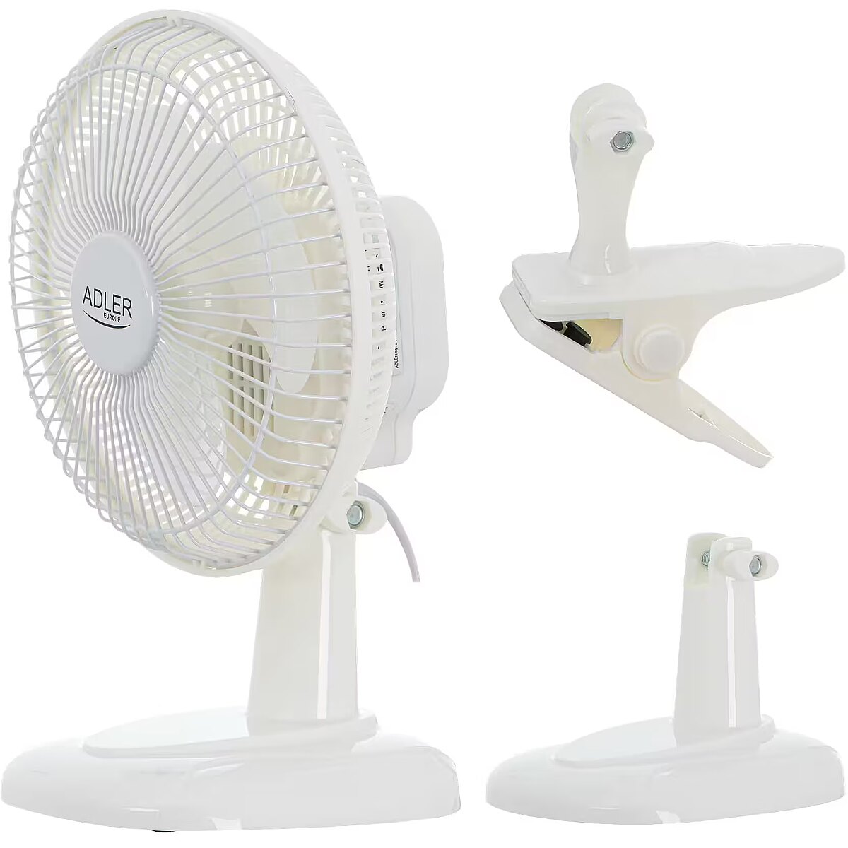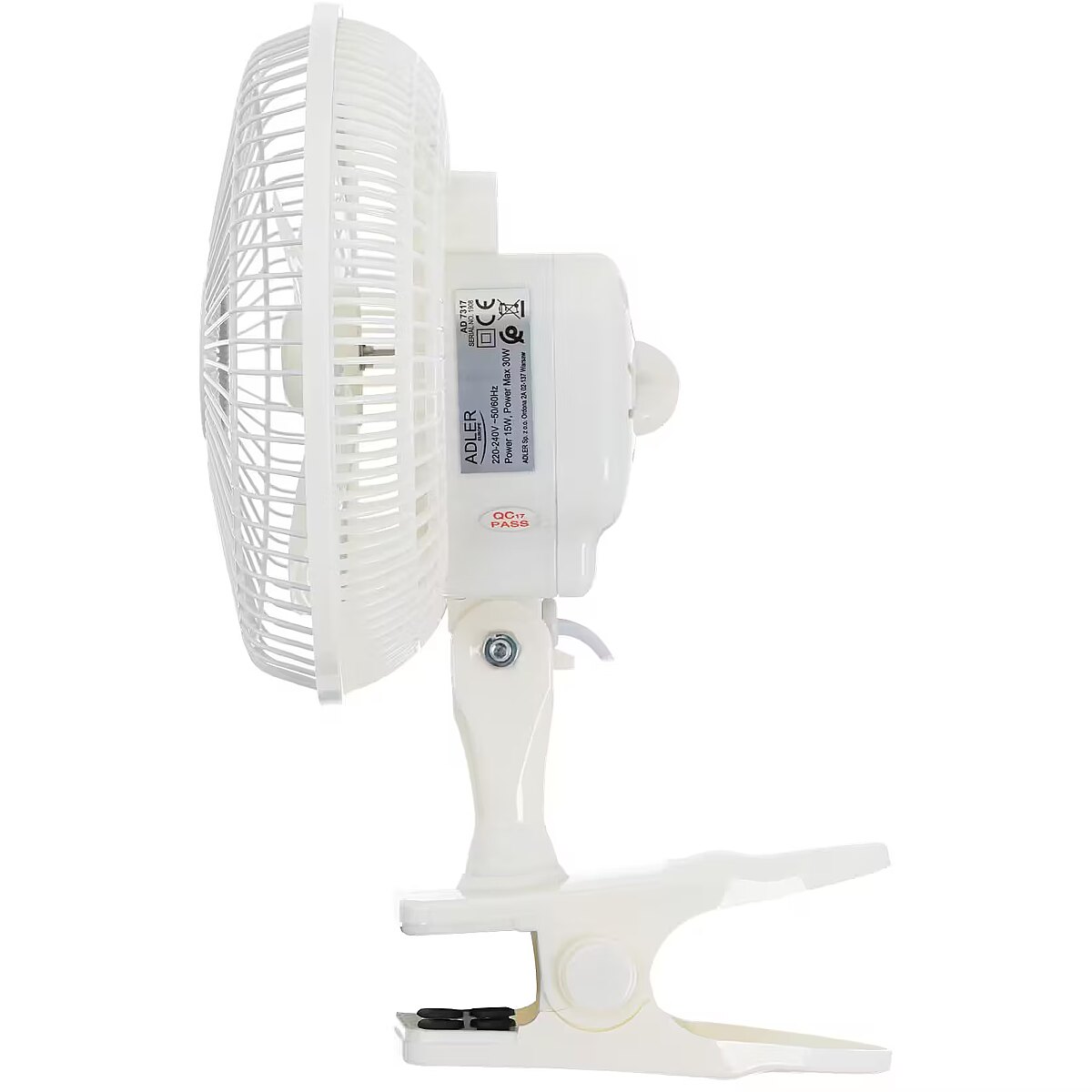 Name - Adler | Fan with clip | AD 7317 | Table Fan | White | Diameter 15 cm | Number of speeds 2 | 30 W