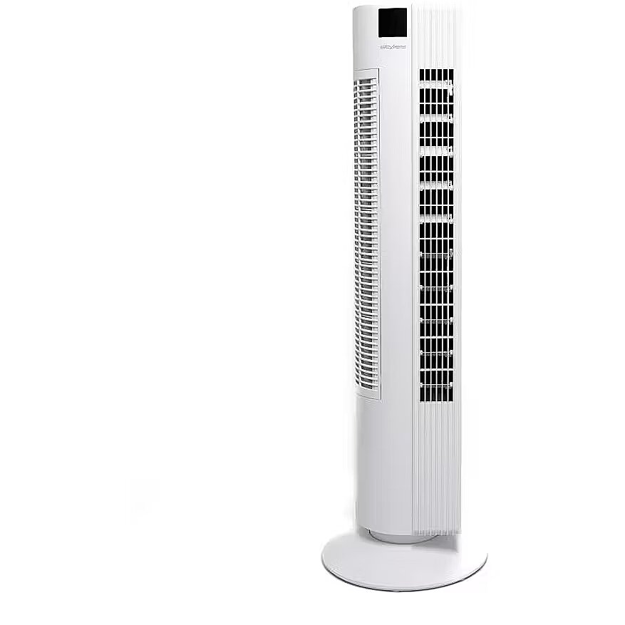 Description - Cygnus Air flow 8 m/s Oscillation 70° 4 speed levels 3 modes: normal, natural, night Timer function Remote control The Cygnus tower fan not only provides coolness and refreshment, but with its slim shape it also requires little space. Thanks to the automatic oscillation at an angle of 70 °, optimal air distribution in the room is guaranteed. Also impressive are the intelligent features such as a timer (1–8 hours), 3 wind modes, 4 speed levels, manually adjustable wind vanes for vertical wind direction, and a convenient remote control. The elegant LED display also shows the current room temperature. A grille protects children's fingers from injury.