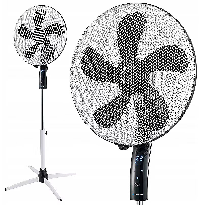 Description - Pedestal fan with display ASF701 A fan is a device that will be useful especially in summer. This is the simplest and cheapest way to fight the heat. A pleasant gust of air will lower the temperature and make us feel relieved and provide ideal conditions for rest or work. The elegant and classic ASF701 floor fan from Blaupunkt will be an ideal choice for people who want to cool larger rooms. Thanks to three speed settings and three airflow modes, this model allows you to set the operation according to your preferences. Standard mode, the fan will work in this way until it is turned off, the natural fan will change the blowing force, simulating the sensation of wind gusts depending on the selected air flow intensity, and night mode, the fan will work in the natural mode, reducing the intensity every 30 minutes, until the natural mode with the lowest intensity. The efficient copper motor and the 40 cm diameter of the fan ensure strong air flow, while the oscillation function ensures even distribution of it throughout the room. Adjusting the inclination and height of the fan allows you to change the airflow direction and adjust the operation of the device to your preferences. This reliable and quiet model can also be operated at night, as the special shape of the fan blades reduces the noise of its operation. At the lowest speed, its noise level is below 40 dB. Safety during use is guaranteed by a plastic safety grid on the back of the device and a strong metal grill on its front, which can be easily removed for cleaning. A remote control, a timer that allows you to set the fan to turn off with a delay, and a clear display indicating the temperature and time of the timer complete the comfort of use. Modern design, solid construction and subdued, classic colors of the fan make it fit into any modern interior.