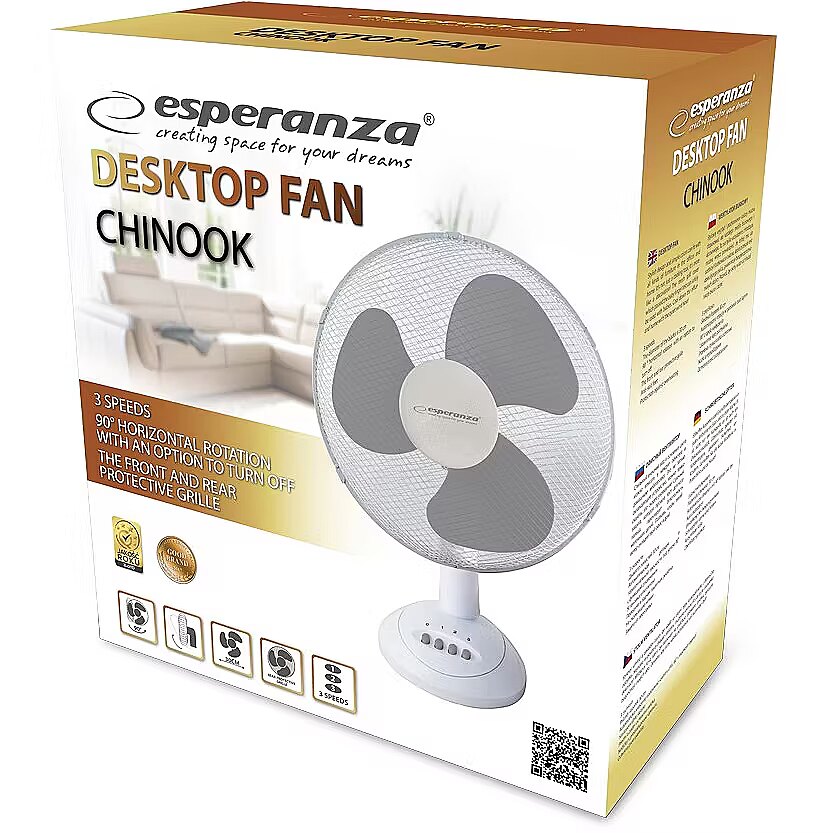 productName - Esperanza EHF003WE, 12'' desk fan, White and Gray