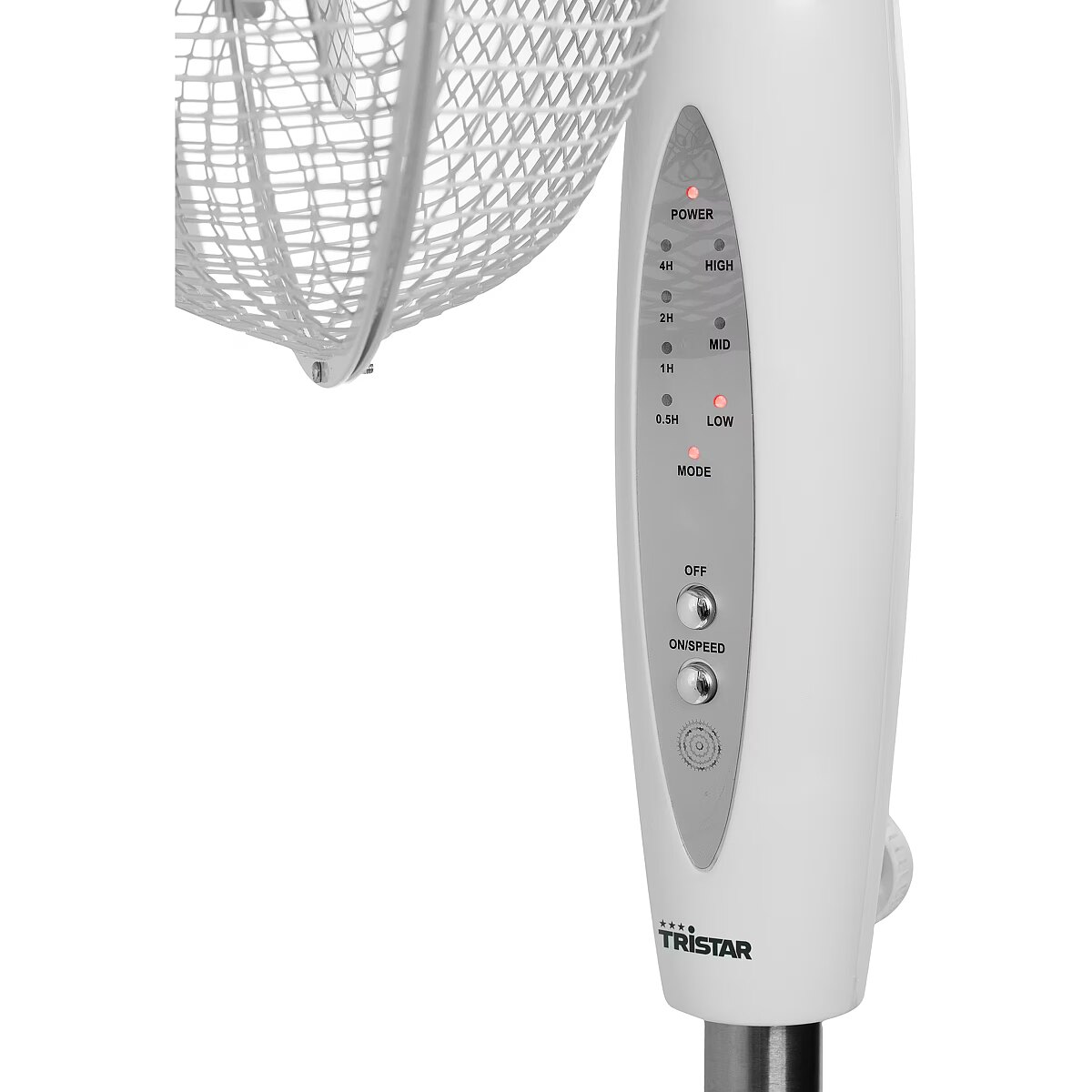 LongDesc - Spoil yourself with just that little bit of extra with the Tristar stand fan with a surprising amount of excellent functionalities. The unique pedestal fan comes with a remote control and a timer function and is very easy to use. Thanks to the simple installation this fan will be your new best friend during warm summer days.Easy to install and useThe Tristar stand fan has a unique foot that has an easy rotary with which you can simply fasten or loosen the legs. This way it is possible to fold the legs together so you can easily store the fan. Another extra functionality is the remote control which allows you to stay seated or in bed while adjusting the fan.Powerful motor with three airflow settingsWith the powerful 45 Watt-motor and the oscillating range of 85 degrees the Tristar pedestal fan can cool an entire room. Thanks to the three different airflow settings (normal, natural, sleep) you can select the most comfortable setting for you and your surroundings.Easy adjustableThe Tristar stand fan has a large fan head of 16 inches so you can use it in every room in your house. You can adjust the height of the fan from 105 up to 125 centimeters so you can choose the most convenient height for your surroundings. The fan head is also adjustable vertically to 25 degrees so you can direct the airflow very preciously.Convenient timer functionNever forget to turn off your fan with the convenient timer function on the Tristar pedestal fan. The timer can be set up to 7,5 hours so you can turn on the fan, set the timer and enjoy the cooling breeze.What’s in the box:Tristar pedestal fan, remote control, instruction manual