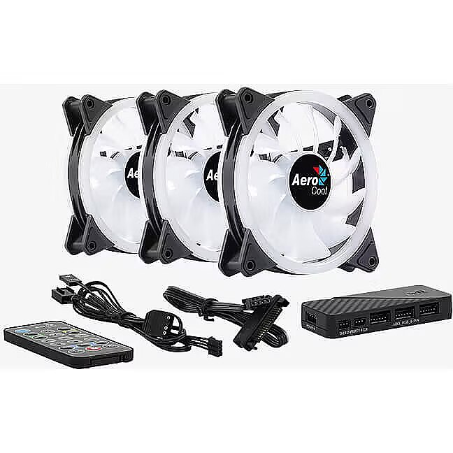 ShortSummaryDescription - Aerocool DUO12PRO Kit 3xFan 12cm ARGB LED Dual Ring Antivibration 6 Pins Black, Fan, 12 cm, 1000 RPM, Black