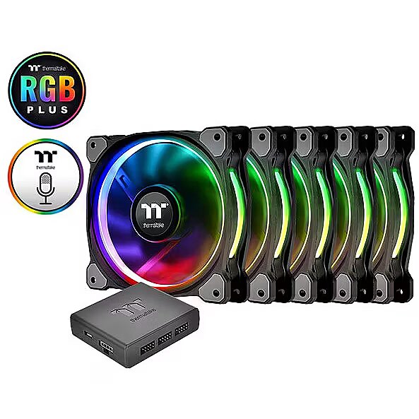 Thermaltake łączy opatentowane, wspaniałe podświetlenie LED z najnowocześniejszą technologią, aby zapewnić zupełnie nowe wrażenia podczas korzystania z chłodzenia komputera. W zestawie znajduje się pięć wentylatorów o wysokim ciśnieniu statycznym i średnicy 140 mm z opatentowanym pierścieniem LED o iluminacji 16,8 mln kolorów. Wentylator Riing Plus 14 RGB posiada łopatki kompresyjne, łożysko hydrauliczne i cyfrowy kontroler wentylatora, dzięki czemu może być kontrolowany przez opatentowane oprogramowanie TT RGB PLUS, jak również przez interaktywne sterowanie głosowe AI. TT RGB PLUS