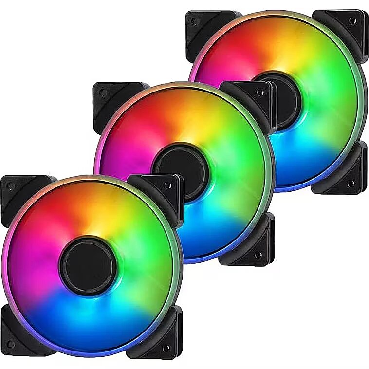 Technical details > Other features - •Six individually addressable hub-mounted RGB LEDs •Specially designed fan blades and outer ring produce an exceptionally uniform glow •LLS (Long Life Sleeve) bearings provide silent operation with a long lifespan •Integrated vibration-damping corners made from high-quality synthetic rubber •Trip Wire technology introduces a micro-turbulent layer for enhanced blade efficiency •Aerodynamic stator struts with embedded wiring reduce noise and turbulence •Chainable RGB cables simplify wiring and make the most of available connections •PWM control with a wide speed range ideal for CPU heatsinks and radiators (PWM versions only) •Black sleeved power cables offer an extra touch of style •Asus AURA, Gigabyte Fusion, MSI Mystic Light, and ASRock Polychrome support •Adjust R1 RGB controller (sold separately) enables physical control of colors and effects •3-pin/PWM versions and 120/140mm sizes available individually or in 3-pack sets