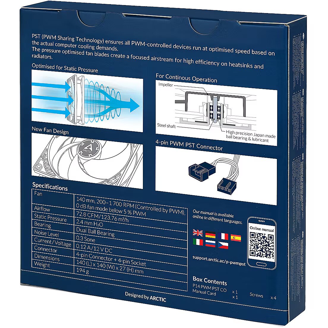 ShortSummaryDescription - ARCTIC P14 PWM PST CO Pressure-optimised 140 mm Fan with PWM PST for Continuous Operation, Fan, 14 cm, 200 RPM, 1700 RPM, 0.3 sone, 123.76 m³/h