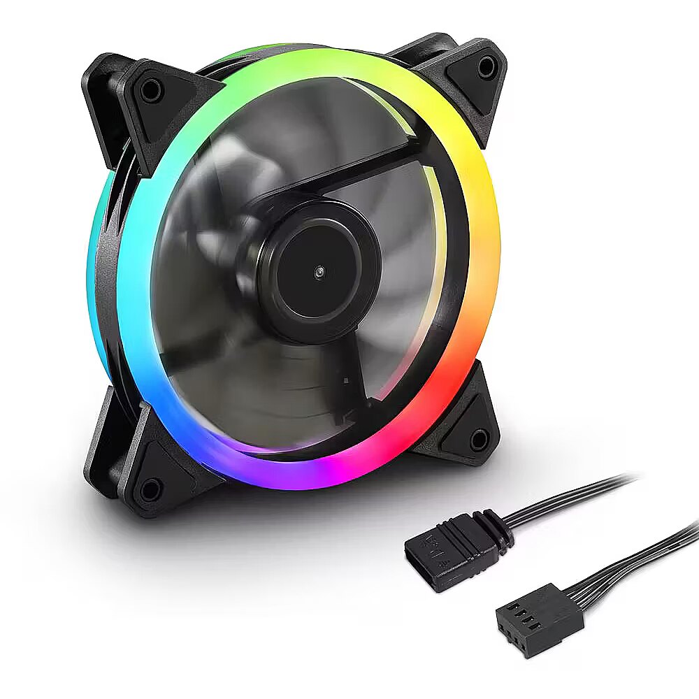 Technical_details - SHARK Blades PWM RGB Fan, case fan Illuminated fans can add the finishing touch to a case. If they also ensure optimal cooling performance, then everything is perfect. This is exactly what the SHARK Blades PWM do. With up to 1,400 revolutions per minute and a maximum volume of 24.8 decibels thanks to its enduring smoothness, they offer performance without compromising. Thanks to its individually adjustable lighting, it fits perfectly into a housing with illuminated components. Despite its strong performance, the SHARK Blades PWM is hardly noticeable in terms of volume. It is just 24.8 decibels maximum, slightly louder than a whisper in the same room. Its hydrodynamic plain bearing promotes smooth performance even during long periods of operation. Thanks to rubberized contact surfaces, housing vibration is also greatly reduced. The rubberized contact points significantly reduce the housing vibrations and also increase the smooth running of the fan. Type: fan Color: Black EAN code: 4044951034307 Type: case fan Usage: for PC case Fastening: screwed Volume: 24.8dB Equipment: LED lighting LED lighting: Yes, addressable RGB headers LED lighting: color | RGB RGB Standard: AURA Sync, Mystic Light, RGB Fusion, RGB LED Speed: 400 to 1,400 rpm Fan bearing: sleeve bearing Flow rate: 94.8 m3/h Air Pressure: Up to 1.16 mm/H2O Power connector: 4-pin PWM Voltage range: 12 volts Cable length: 45 cm More information: The SHARK Blades PWM offers 20 addressable RGB LEDs for the user to configure, with up to 16.8 million colors to choose from to achieve this Let the housing shine in the brightest colors. All LEDs can be set as desired via the mainboard software. As with all Sharkoon fans, the lighting effects of the SHARK Blades PWM can also be synchronized and controlled with almost all common ARGB controllers. For example, the fan is compatible with the Asus Aura Sync, MSI Mystic Light Sync, and Gigabyte Fusion specifications. The user can also use ARGB controllers from all suppliers that support pin assignments such as the 3-pin 5V-DG or the 4-pin 5V-D-coded-G connector. Accessories: available | Instructions, fan screws Dimensions: Fan1 | Quantity: 1 piece Width: 120mm Height: 120mm Depth: 25mm Weight: case fan | 142 grams