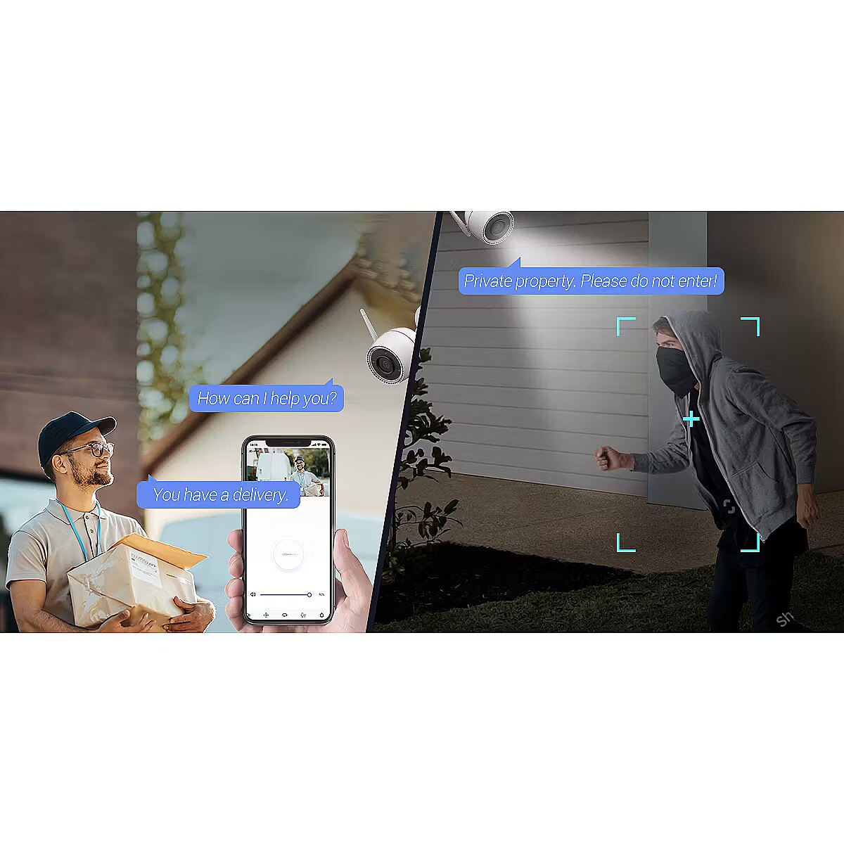 LongDesc - Reliably ready for every crucial momentA well-built camera by quality and functionality, the H3c 2K is designed to provide 24/7 non-stop home protection in a smart way. Working as an outdoor guard for most homes, the camera renders ultra-sharp 2K video and colorful night vision, and is smart enough to detect human activities and provide active defense. Compact in size and durable against weathers, the H3c 2K can be your ideal home security camera.Capture every moment in superb clarityThe H3c 2K offers superior detail capturing with ultra-clear 2K resolution. It ensures that you never miss a single important moment that takes place at home.See in color, even at night.Unsatisfied with blurry, overexposed black-and-white images during the nighttime? The H3c 2K makes late-night protection easier by restoring colors and details. In addition to a pretty sharp IR night vision, the camera can light up the environment with two built-in spotlights to render color night vision.Communications can be this easyEnjoy two-way audio by simply using your smartphone. Or, pre-record a 10-second voice message that automatically plays upon human motion detection.AI algorithm for alerts that matterThe camera’s onboard AI algorithm helps distinguish and detect moving people in particular, so as to reduce insignificant alerts caused by falling leaves or flying insects. You will receive smarter notifications that matter to you.A vigilant guard who works around the clockThe H3c 2K integrates EZVIZ’s beloved active defense function to provide an extra layer of protection. Upon detection of intruders, the camera will set off a loud siren and flash two spotlights⁴ to warn them away.Protection lasts, even in harsh weathersThanks to its well-built camera body, the H3c 2K is IP67-rated to withstand even the toughest weather conditions – whether it’s rainy, stormy or snowy.Smart integration, hands-free controlYou can integrate the H3c 2K to your existing smart home system. Voice-enable the live viewing with “Hey Google” or “Alexa” to check what’s happening on a bigger screen.Extra-Large, safe storage options that you can trustYou can secure your recorded videos on a local microSD card of up to 512 GB, or subscribe to EZVIZ CloudPlay for fully-encrypted cloud storage.Enhanced viewing pleasure with smaller video filesCompared against the prevailing H.264 video compression technology, H.265 creates a more fluid viewing experience with recorded footage. Meanwhile, you won’t have to worry about large video files taking up too much of your storage space – H.265 technology can reduce their sizes by up to 50%.We do our best to protect your data and privacyWe design the product to respectfully protect your data and privacy. You can also acset up no filming zones6 to make sure recording only happens when it's appropriate and allowed.