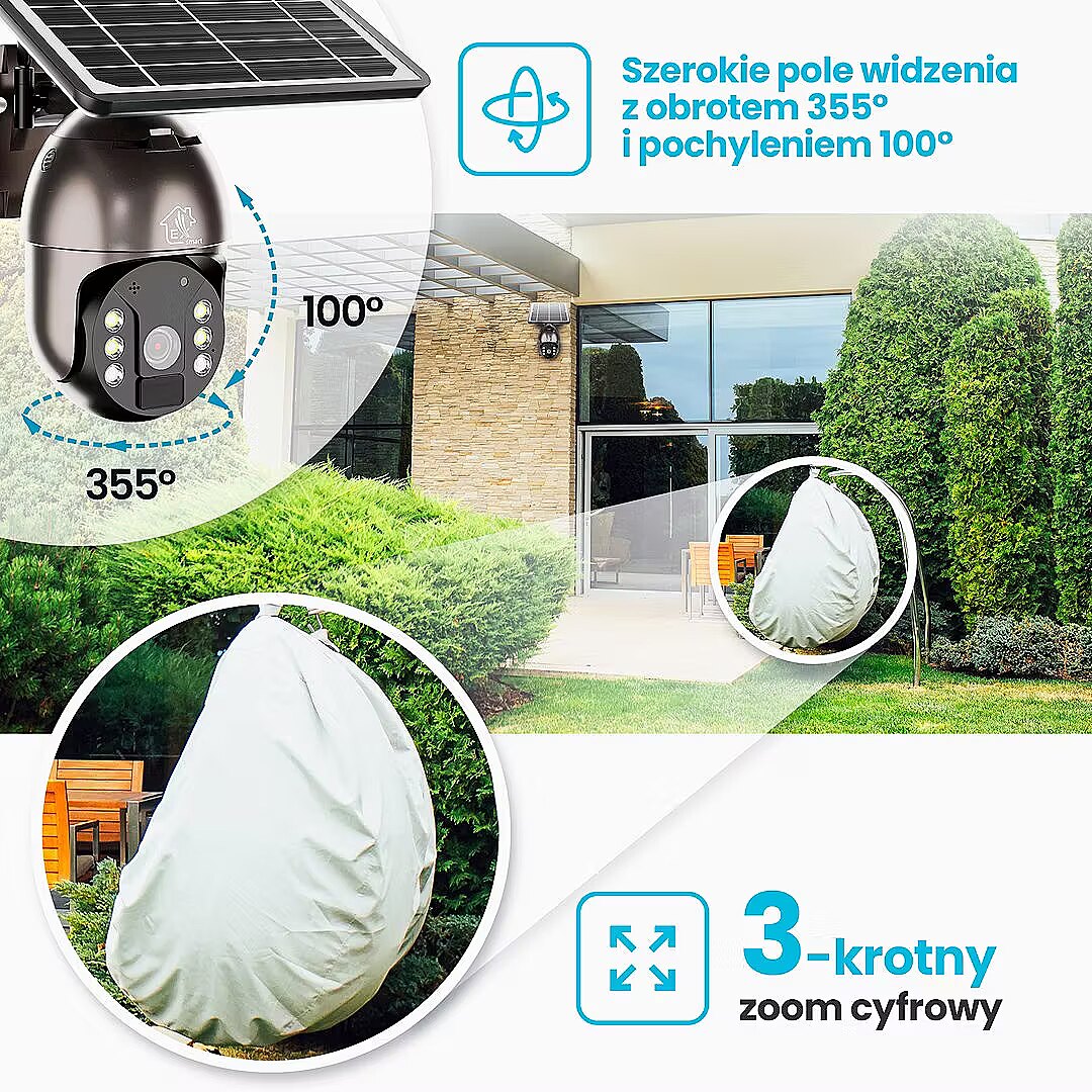 productName - Extralink 3G/4G/LTE camera Mystic 4G PTZ with solar panel 8W, 1080p, IP66, 4x 18650 battery