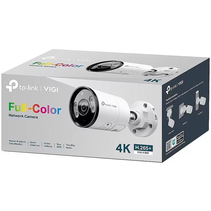 Description - VIGI C385 8MP Outdoor Full-Color Bullet Network Camera 4K (8MP) Ultra HD & 24h Full Color Human & Vehicle Classification Intelligent Detection Intelligent Video Enhancement Technology Active Defense & Two-Way Audio IP67 Waterproof H.265+ Compression Technology 12V DC/PoE Power Supply